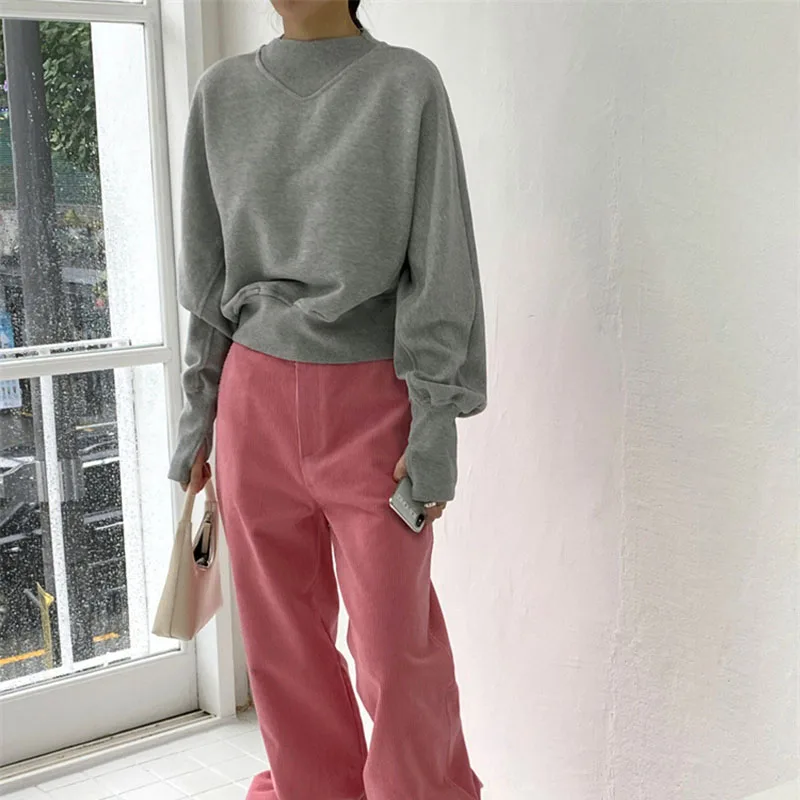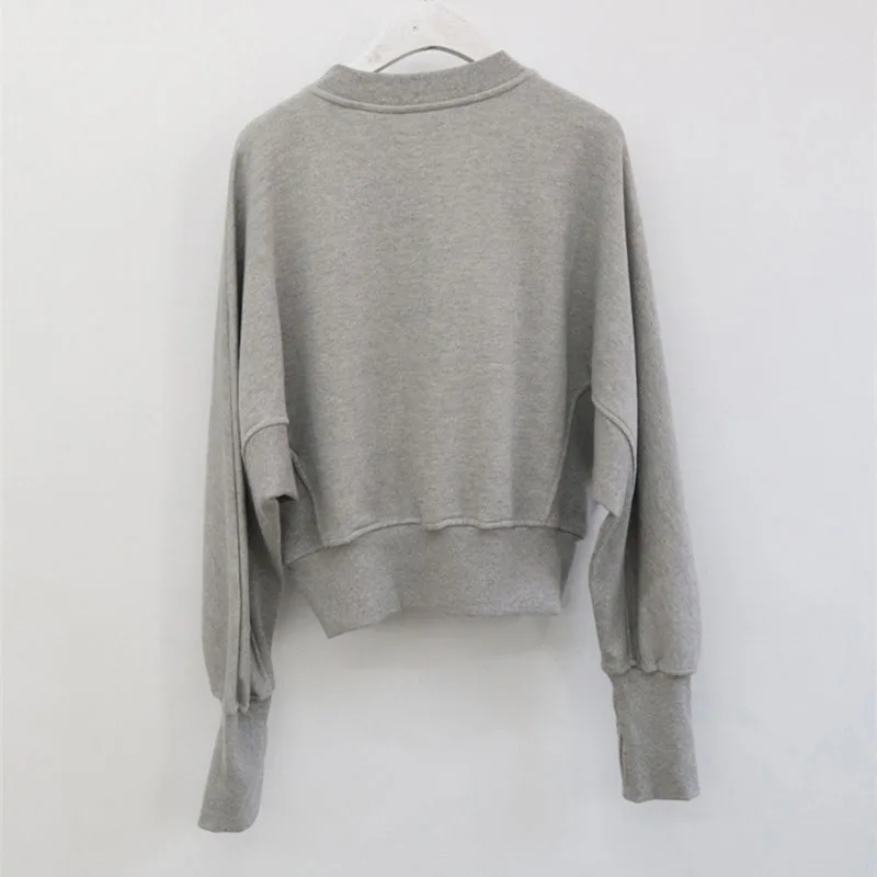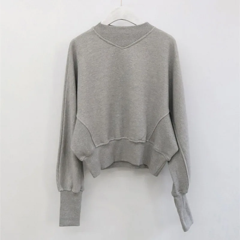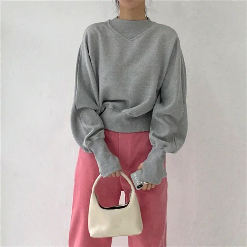 Fashion Waist Cinched Cropped Sweatshirts Women Autumn Harajuku Casual Oversized Pullover Lady Gray Long Sleeve Crewneck Hoodies