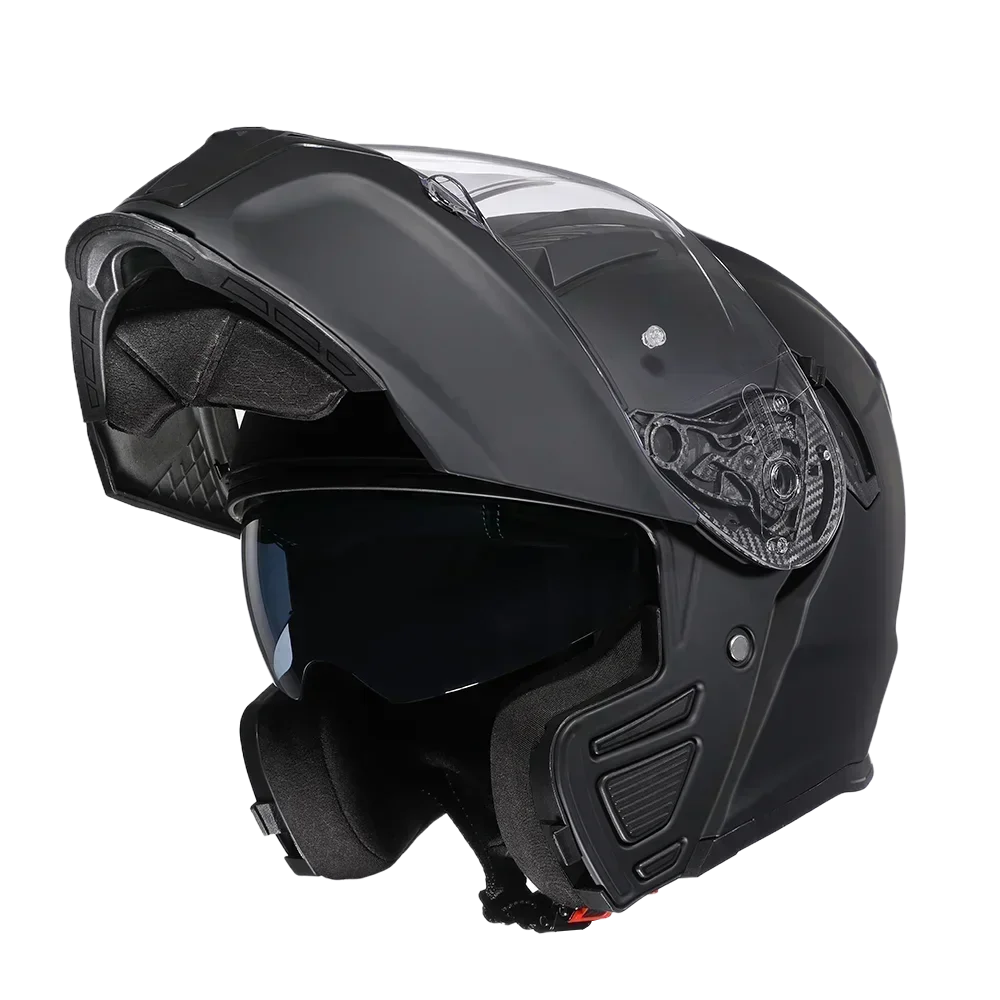 The double visors ensure optimal visibility and protection in various lighting conditions, enhancing your riding experience regardless of the season.