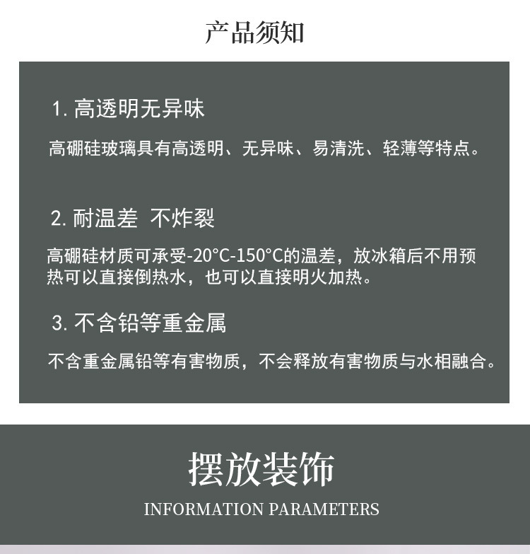 1. Material: Made of high-quality Glass material, non-toxic and tasteless, durable, environmentally friendly and practical.