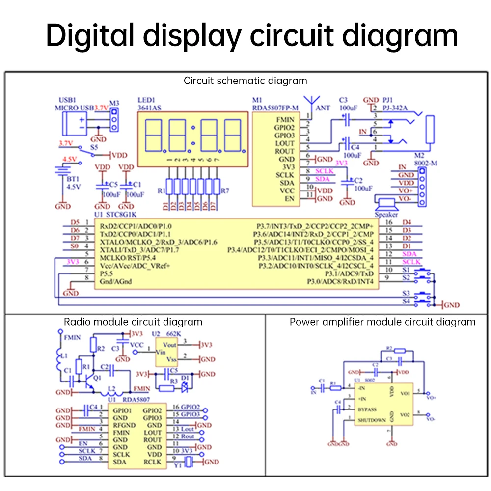 Control chip: RDA5807 8002D (STC81K17 digital version)