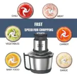 Food Processors Electric, Meat Grinder 3L Stainless Steel Meat Blender Food Chopper for Meat, Onion, Garlic, Vegetables