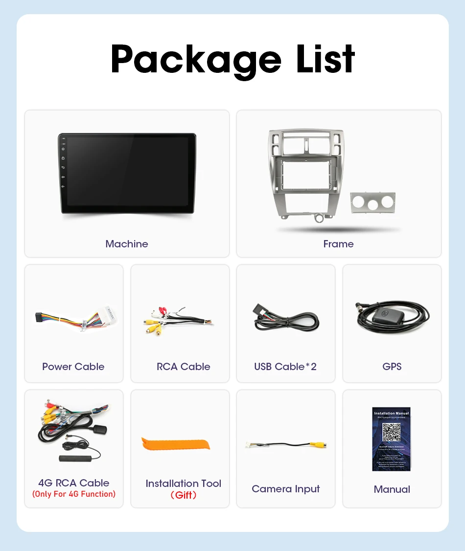 - Accessories: Machine/Connector/Frame/RCA cable/USB cable * 2/GPS