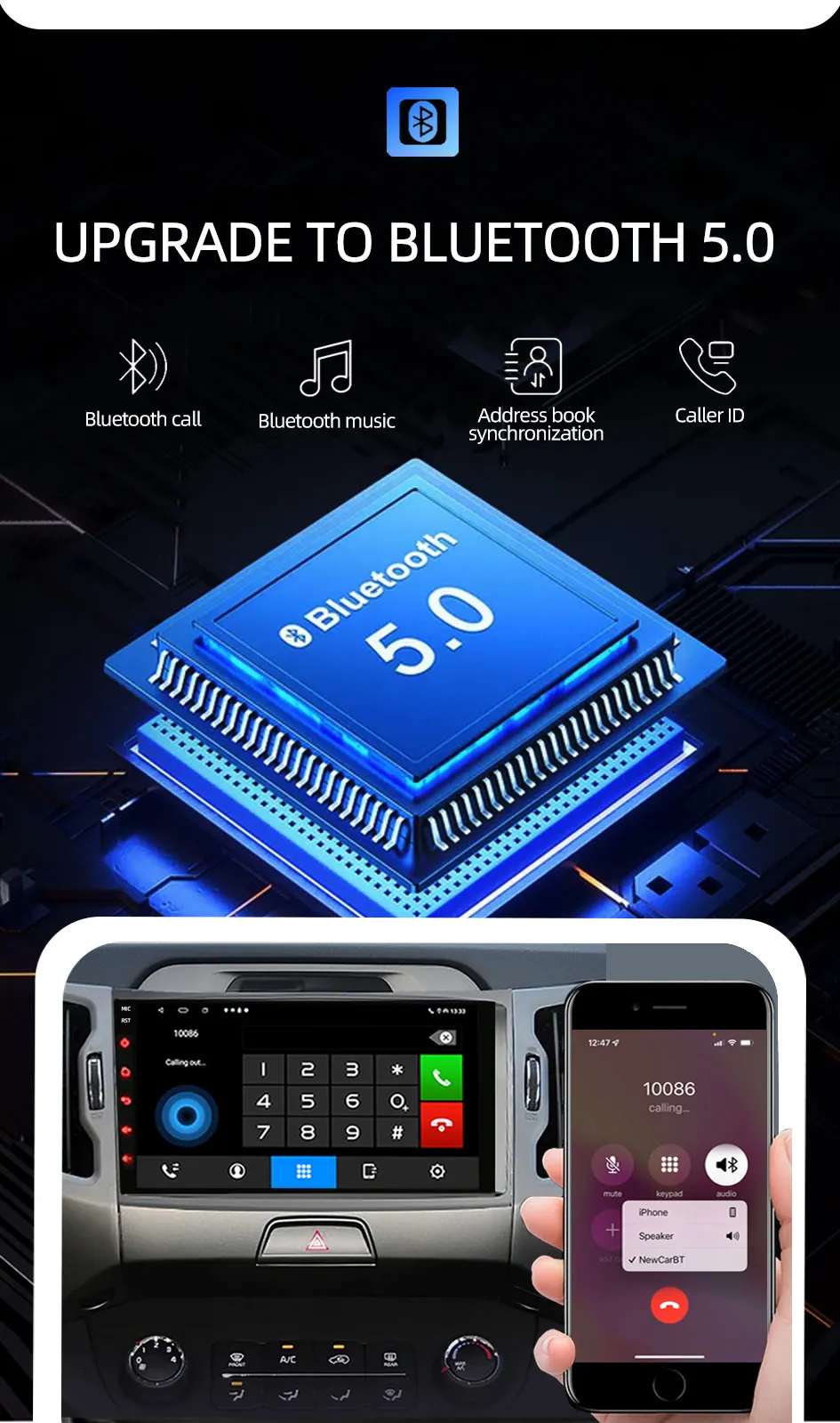 Built-in bluetooth 5.0, support bluetooth phone, bluetooth music, address book.
