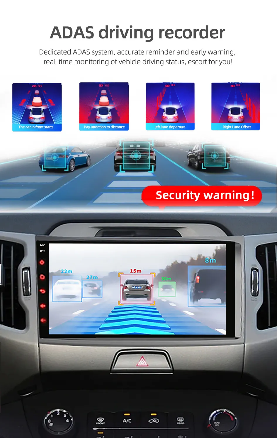 ADAS driving warning function, if you are too close to the vehicle in front or deviate from the current driving track, it will alarm and remind, making your driving safer!