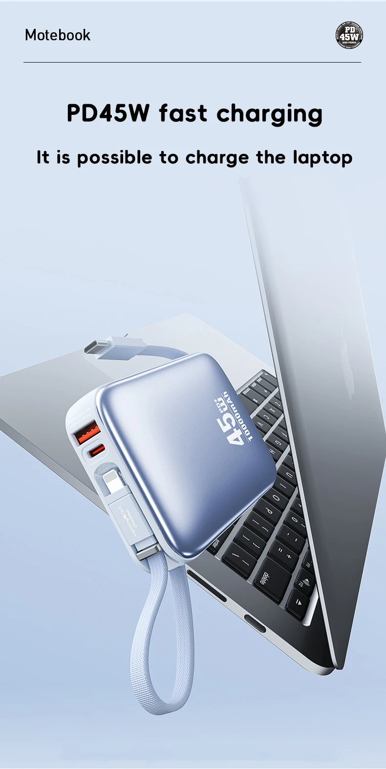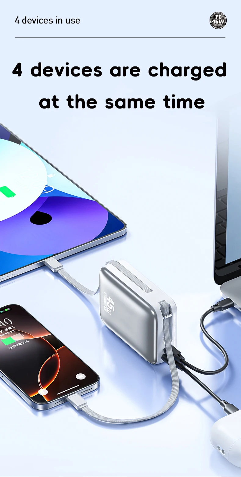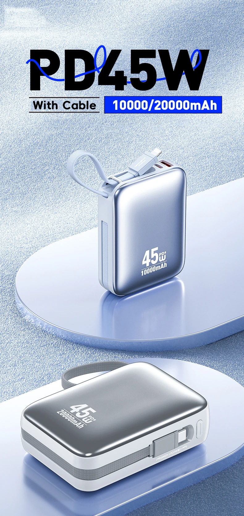 20000mAh 45W PD Large capacity Portable Power Bank 10000mAh Built-in USB Type-C lighting cable Fast Charging External Auxiliary Battery Powerbank for iPhone 16 15 14 13 Samsung Xiaomi HUAWEI Laptop