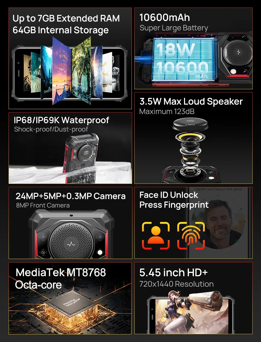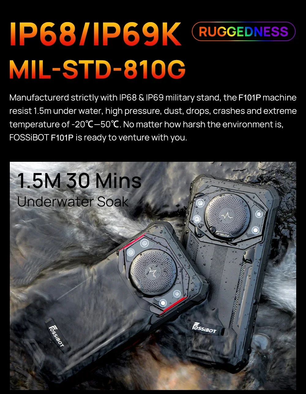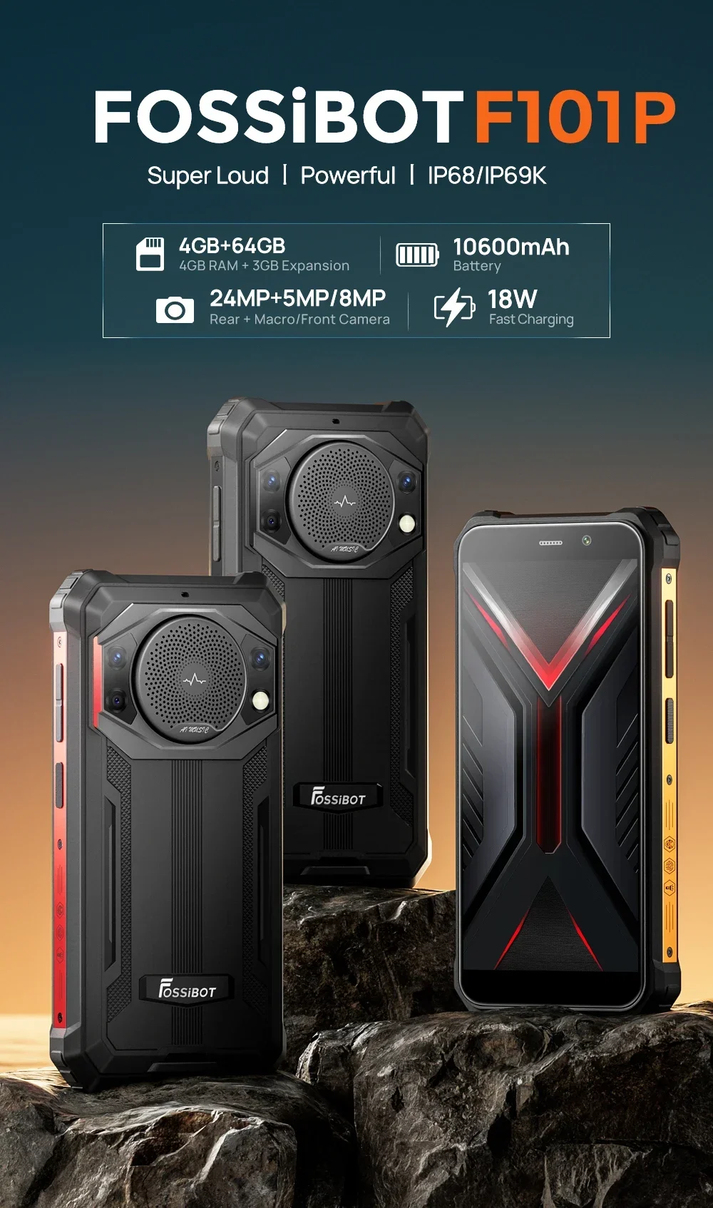 FOSSiBOT F101 P Waterproof Rugged Smartphone Octa-core 4GB+64GB 5.45Inch 10600mAh Battery Fast Charge 24MP Camera 4G Mobile Phone