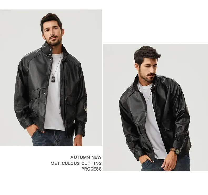 Free Shipping American Style Vintage Leather Jacket 2024 Autumn Motorcycle Jacket Zip-Up Aviation Jacket For Men Fashionable Out