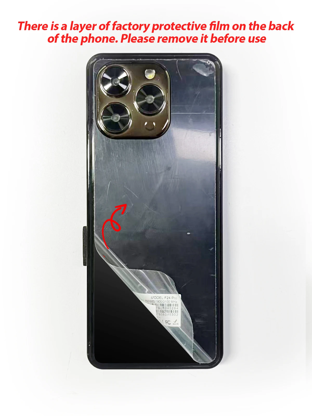 3. There is a layer of factory protective film on the back of the phone. Please remove it before use
