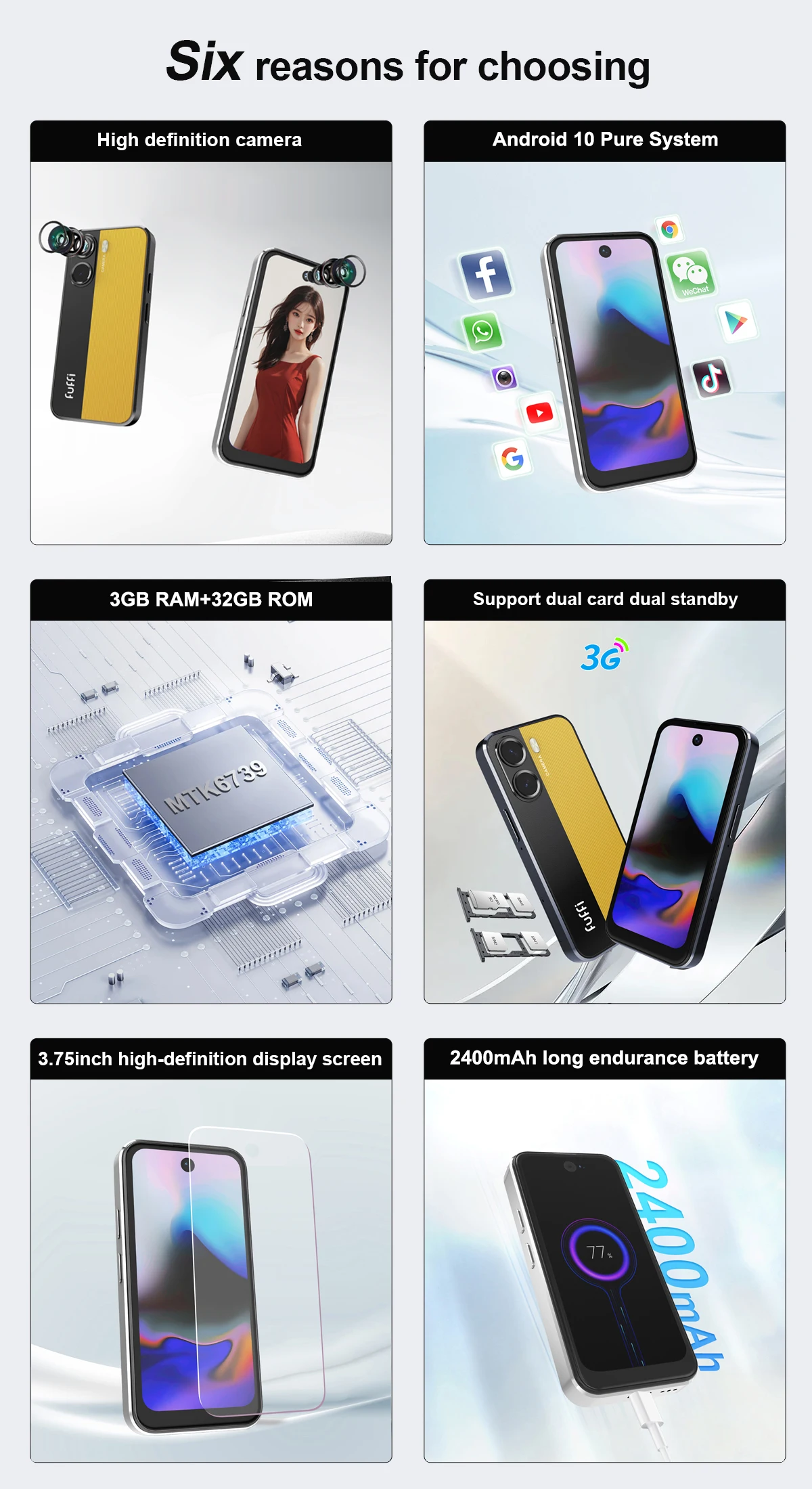 Fuffi Mini X7 Pro Phone 4G LTE Android10.0 Smartphone 4GB RAM 128GB ROM 4″ Display 5MP Camera Dual SIM With Play Store WhatsAPP