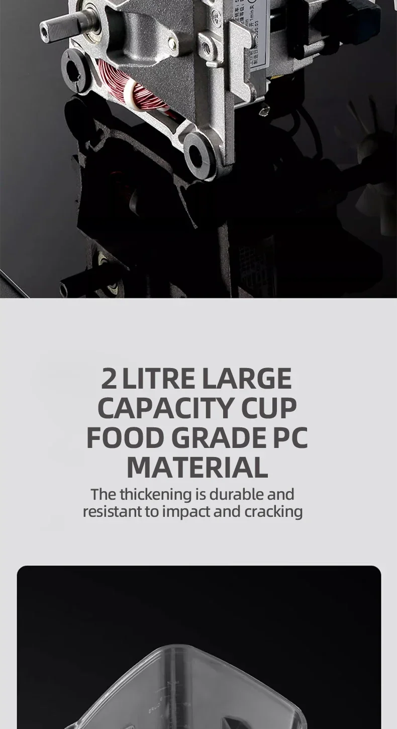 Capacity: large cup 2L capacity, grinding cup 0.6L capacity;