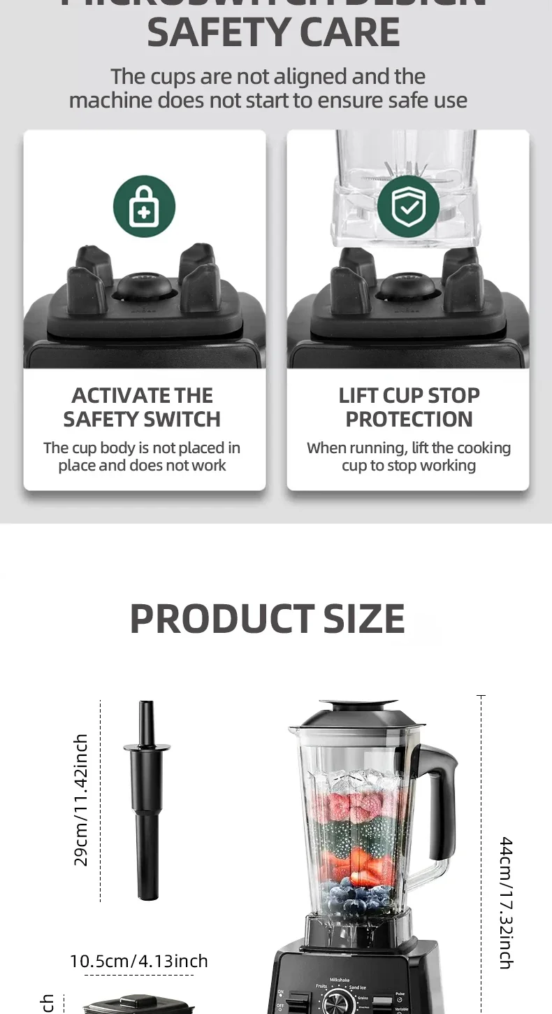3. The operation is simpler; the product is equipped with a safety switch, and the cup is powered off for protection; the mixing cup and grinding cup can be easily disassembled;