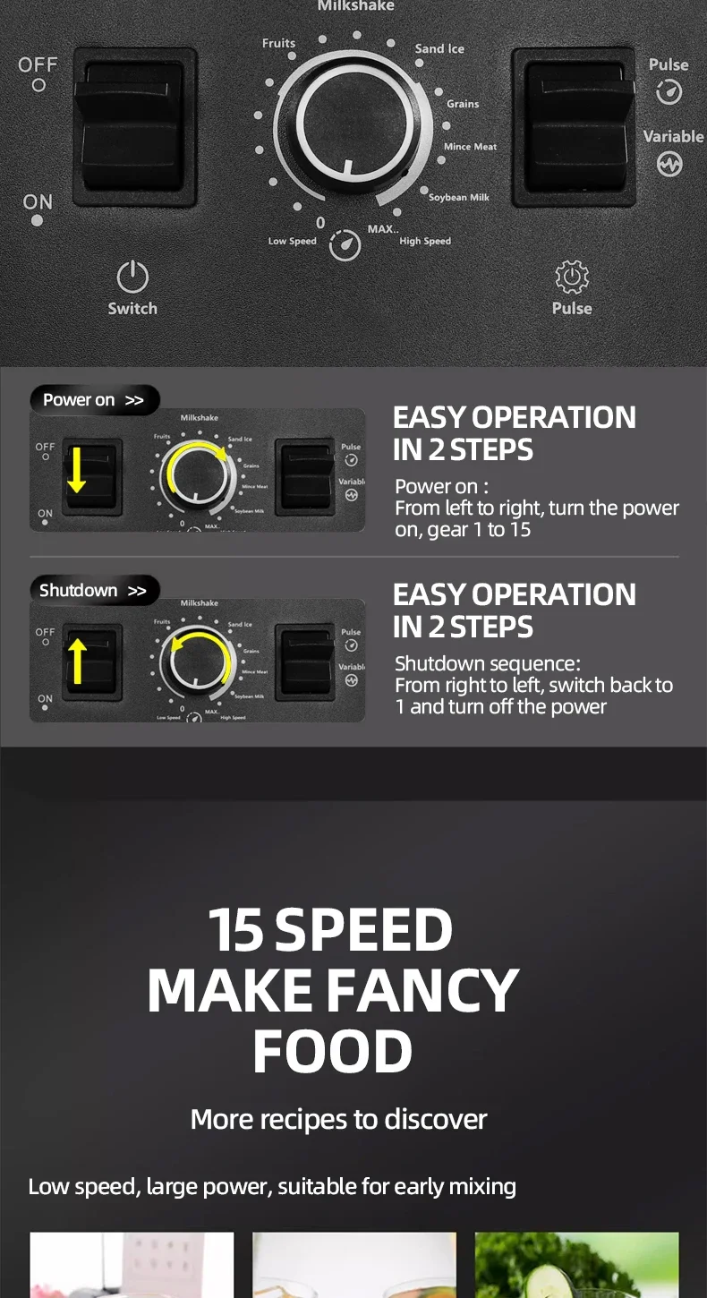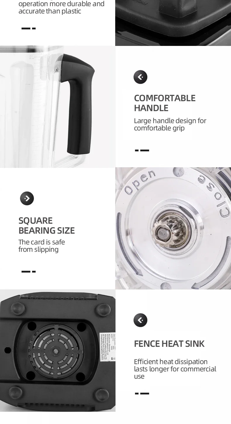 1. As soon as you received the blender, please add some water inside the container to test, DO NOT run it without anything inside as it’s a bad try for the coupling system, DO NOT grinding dry ingredients over 1 minute.