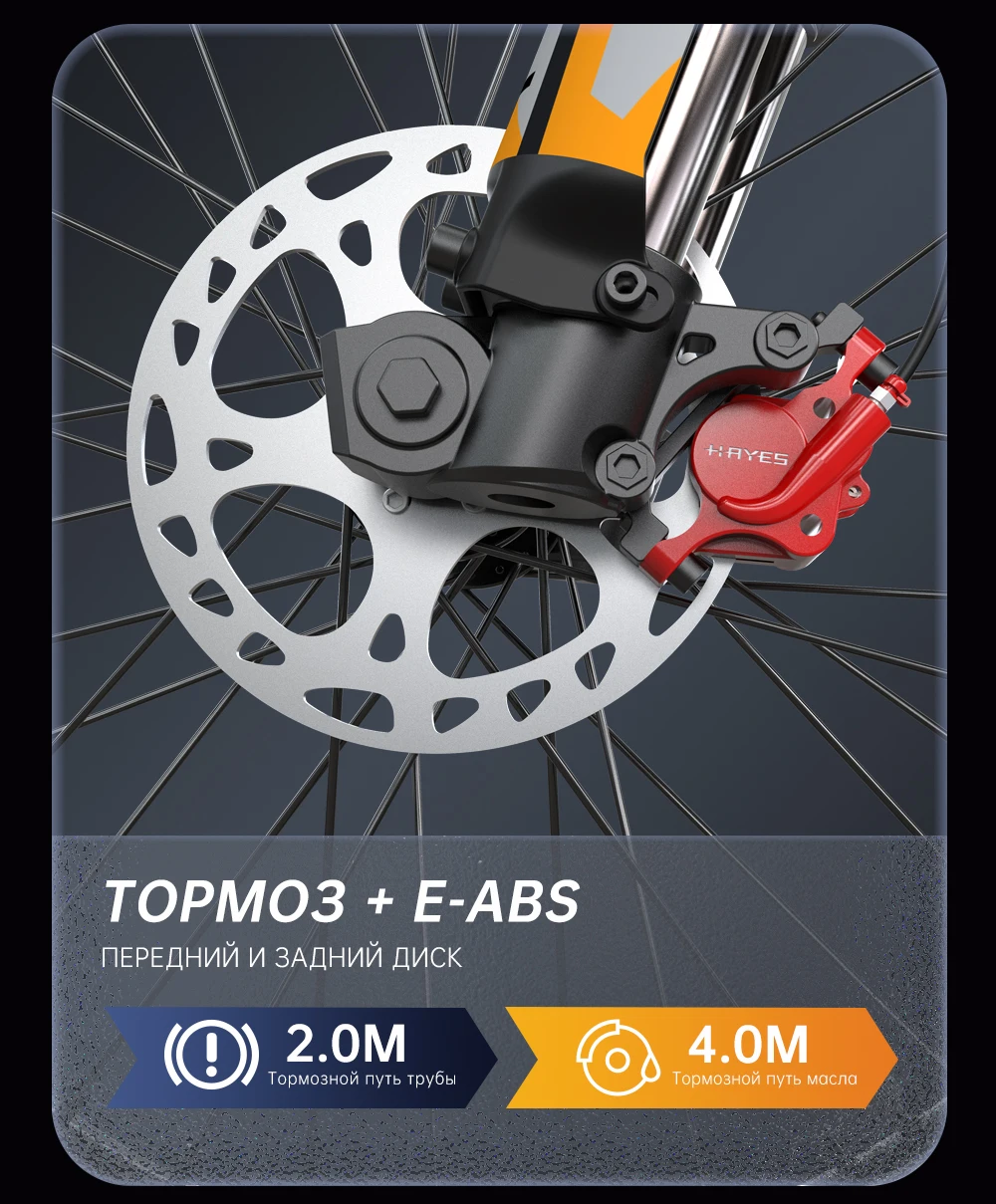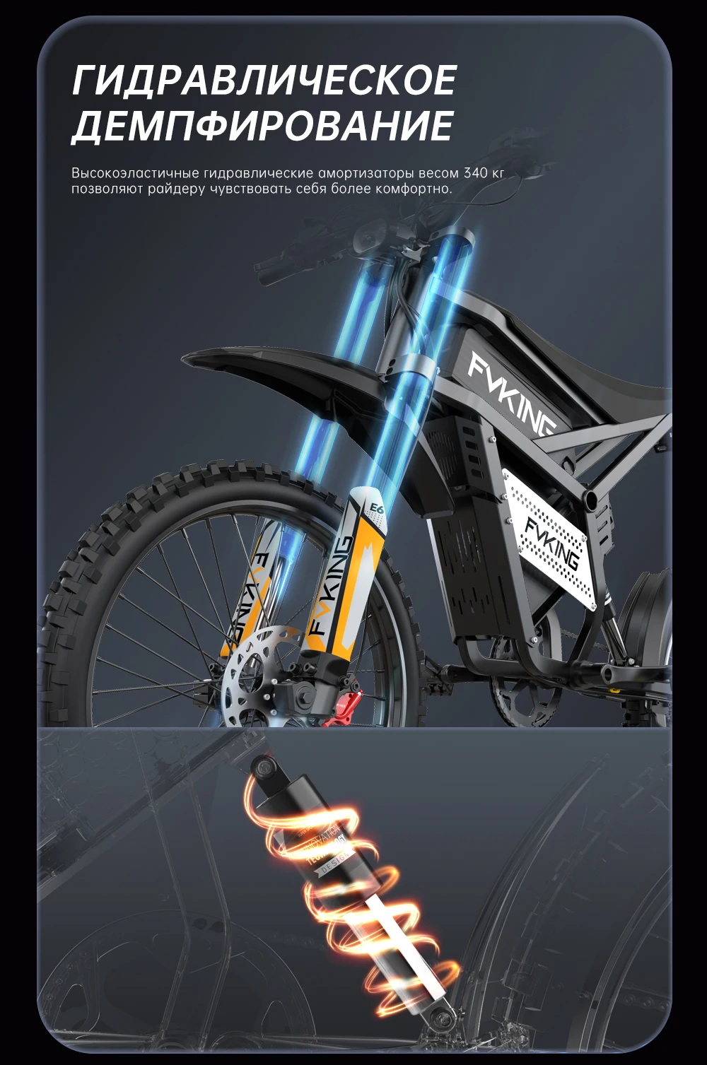 4. système de freinage: Fourche avant à suspension hydraulique en aluminium et suspension hydraulique arrière.