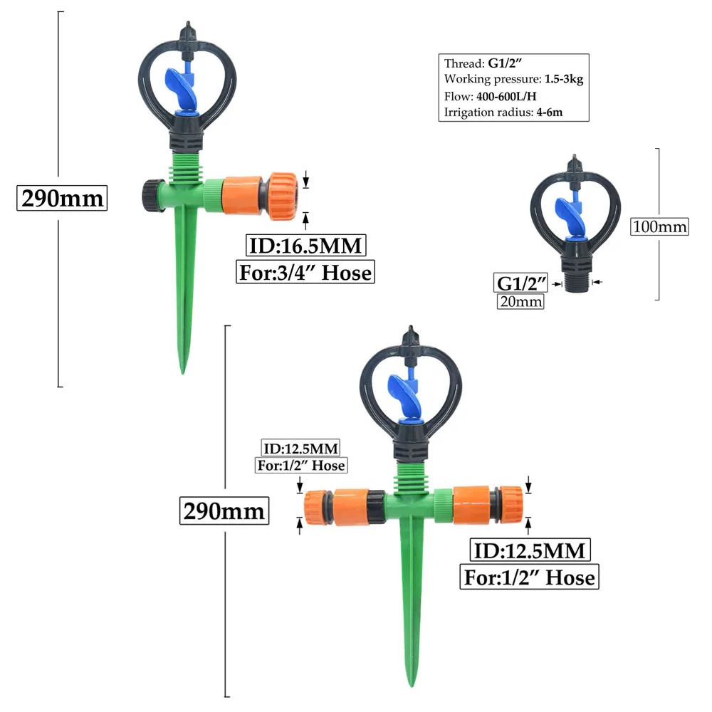 Garden Lawn 360 Degree Rotating Sprinkler 1/2″ Male Thread Scattering Nozzle Automatic Rotating Watering Nozzle With Support
