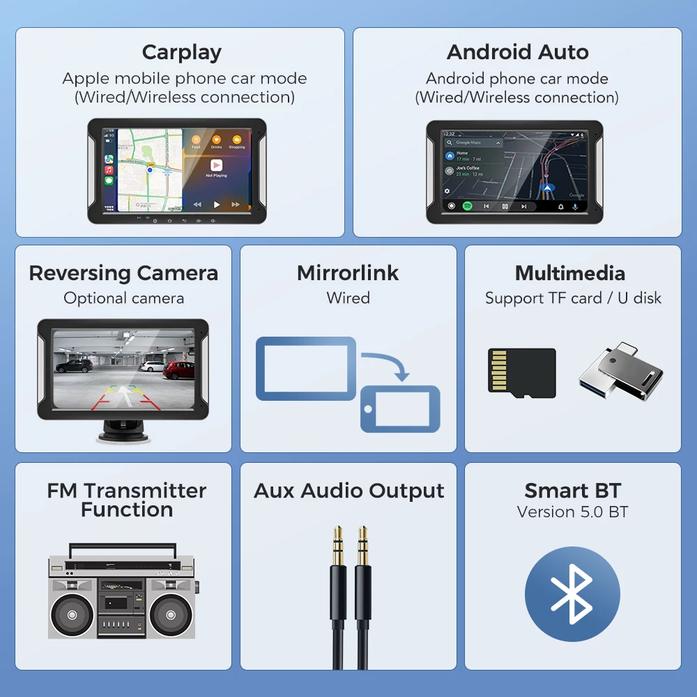 4. Wireless Carplay & Android auto, suitable for Apple and Android mobile phones, you can synchronize mobile phone pages when you get in the car