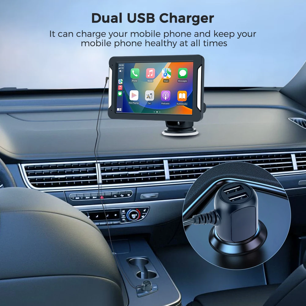 Power plug have 2 USB port for phone quick Charge,you can charge your phone while using wireless Carplay/ Android Auto,your phone battery will always be safe