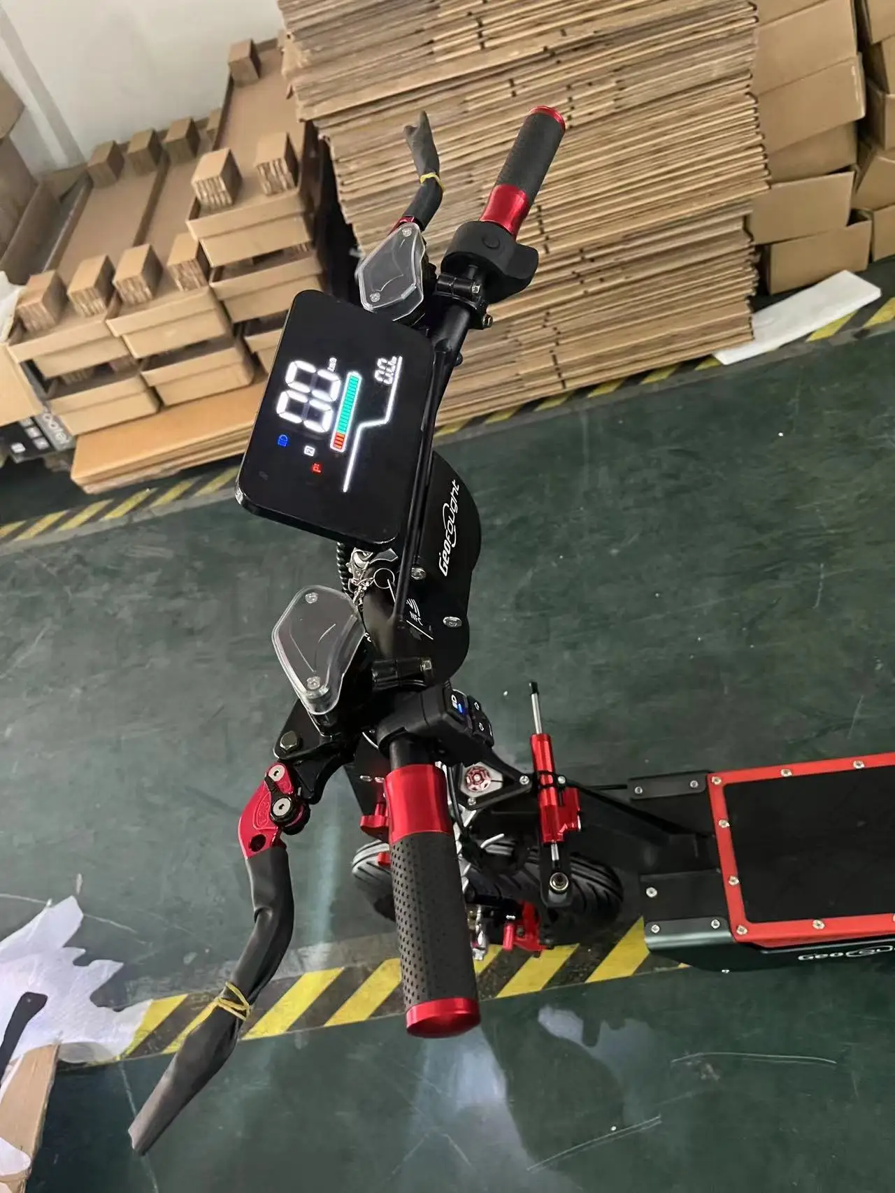 This electric scooter features a scooter design and equips with a QS racing motor and Votol controller. Faster riding speed and better experience. Providing strong impetus.
