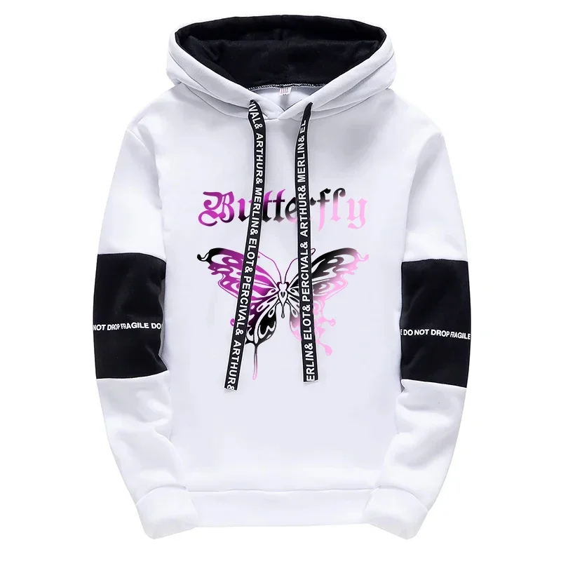 Girls Urban Fashion Loose Coat Butterfly Letter Print Hoodie for Woman High Grade Y2K Korean Style Hooded Long Sleeve Sweatshirt