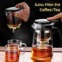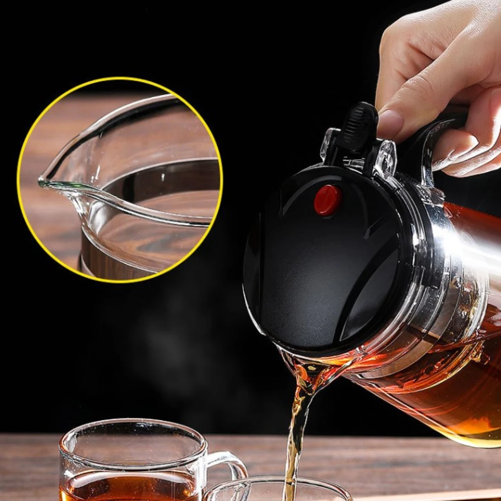 Glass Coffee Pot Teapot with Removable Infuser,Clear Tea Kettle with One Button Press Filter Loose Leaf Brewing Coffee Maker