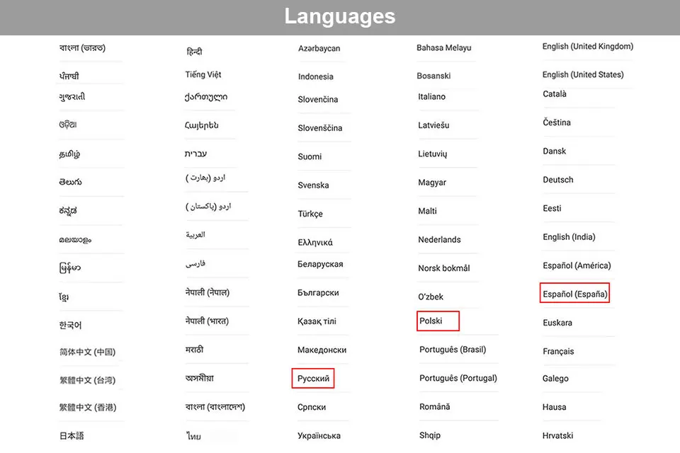 - Language: English,Russian,German,French,Spanish,Polish,Portuguese,Italian,Turkish,Norwegian,Korean,Japanese,Arabic