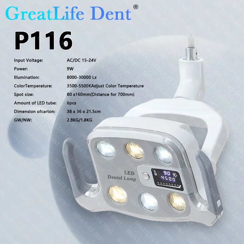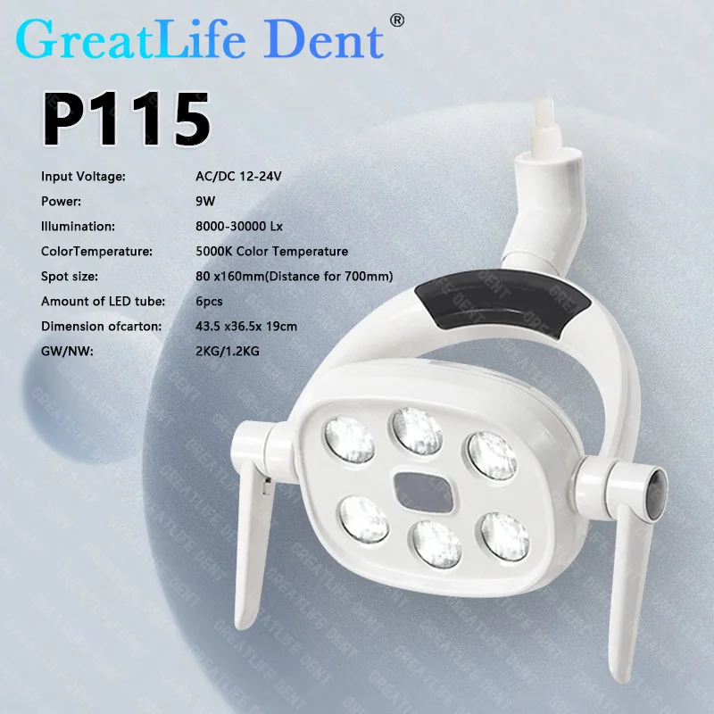 GreatLife Dent 9w Dental Chair Oral Lamp Unit Shadowless LED Cold Light Surgical Lamp Manual/Induction Adjustable Brightness
