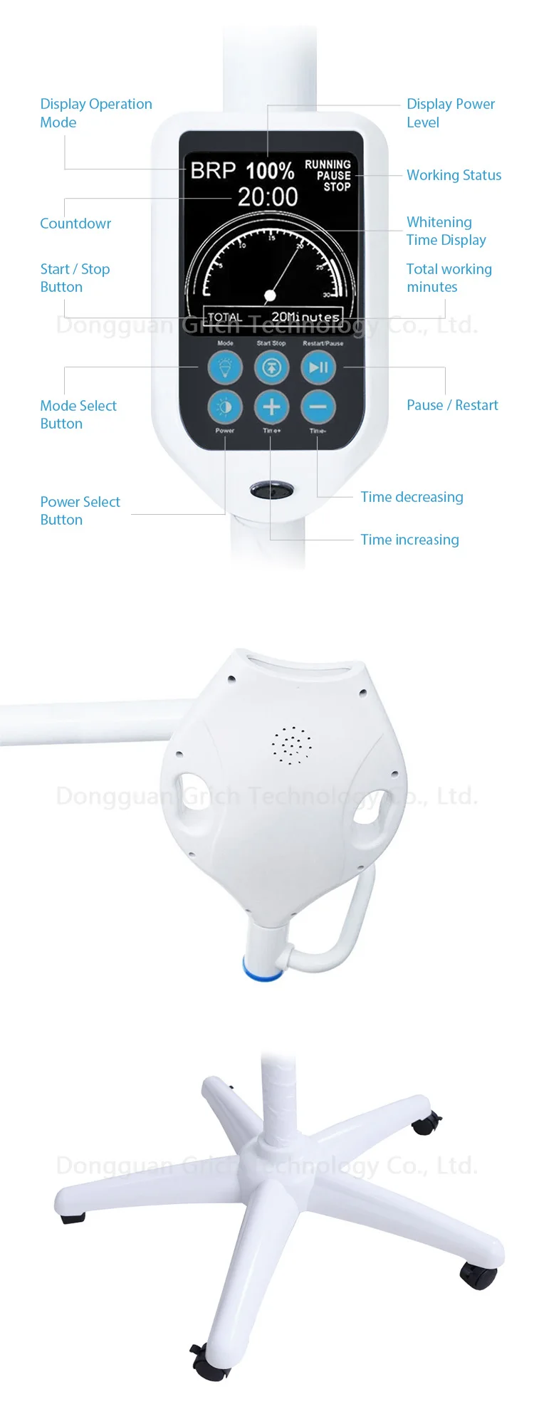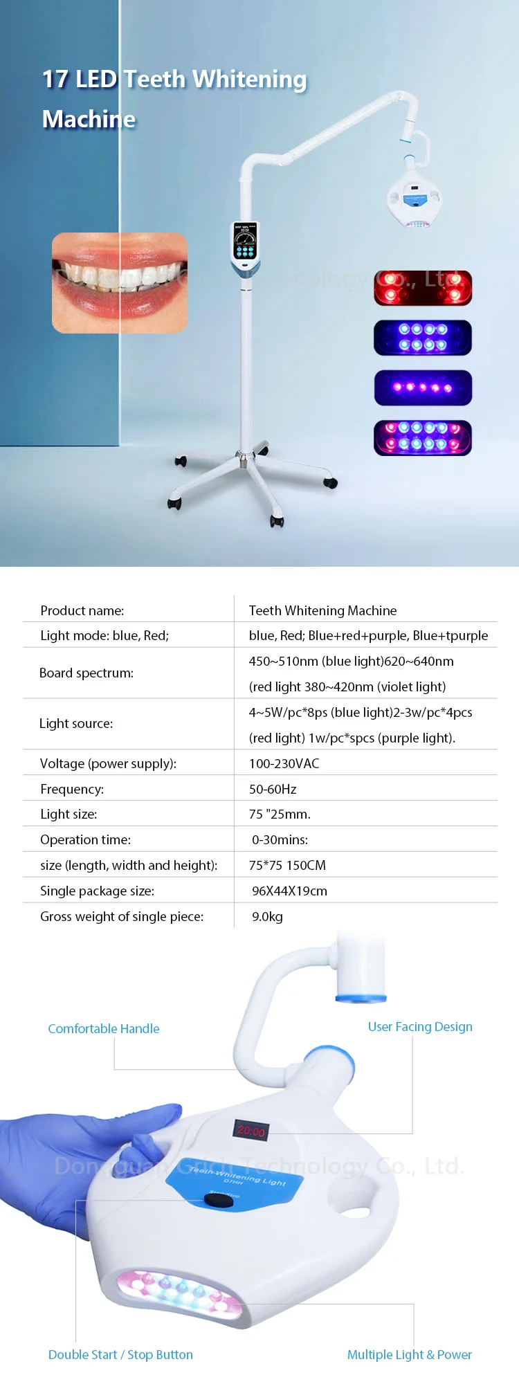 1. A cooling Light device could emit specific wave length , the light irradiate a special whitening agent which is applied on the surface of the teeth so that teeth become whitening