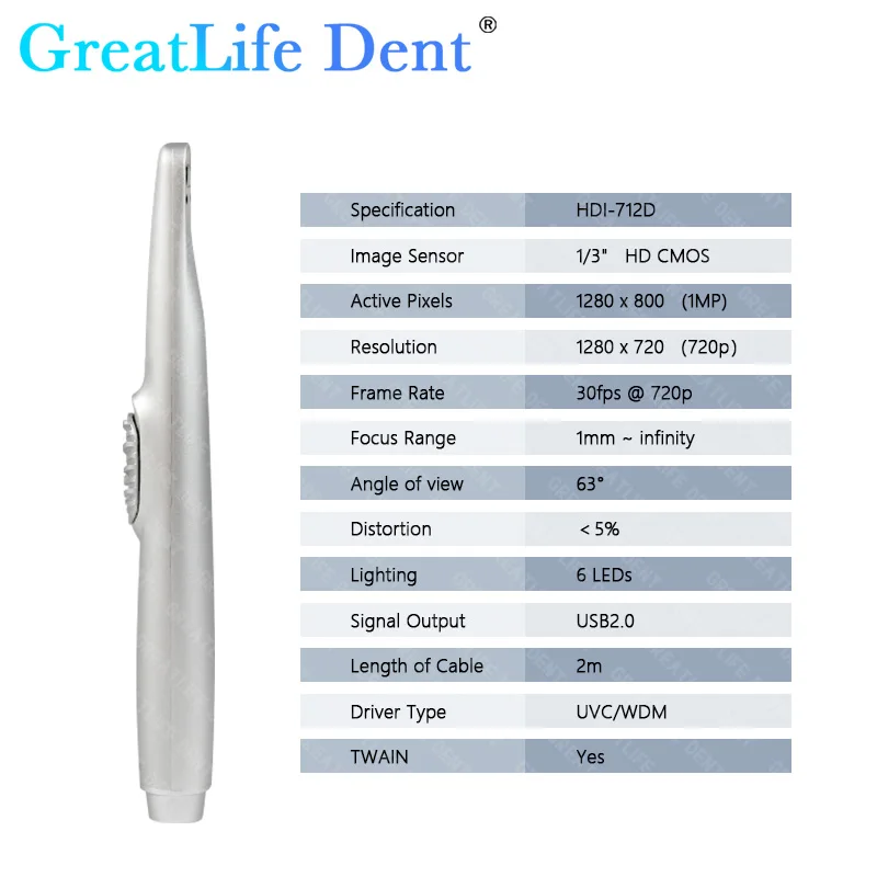 GreatLife Dental Intraoral Camera Teeth Inspection Oral Endoscope For Dentist With 3D Zoom Key Combination Twain Drive Compact