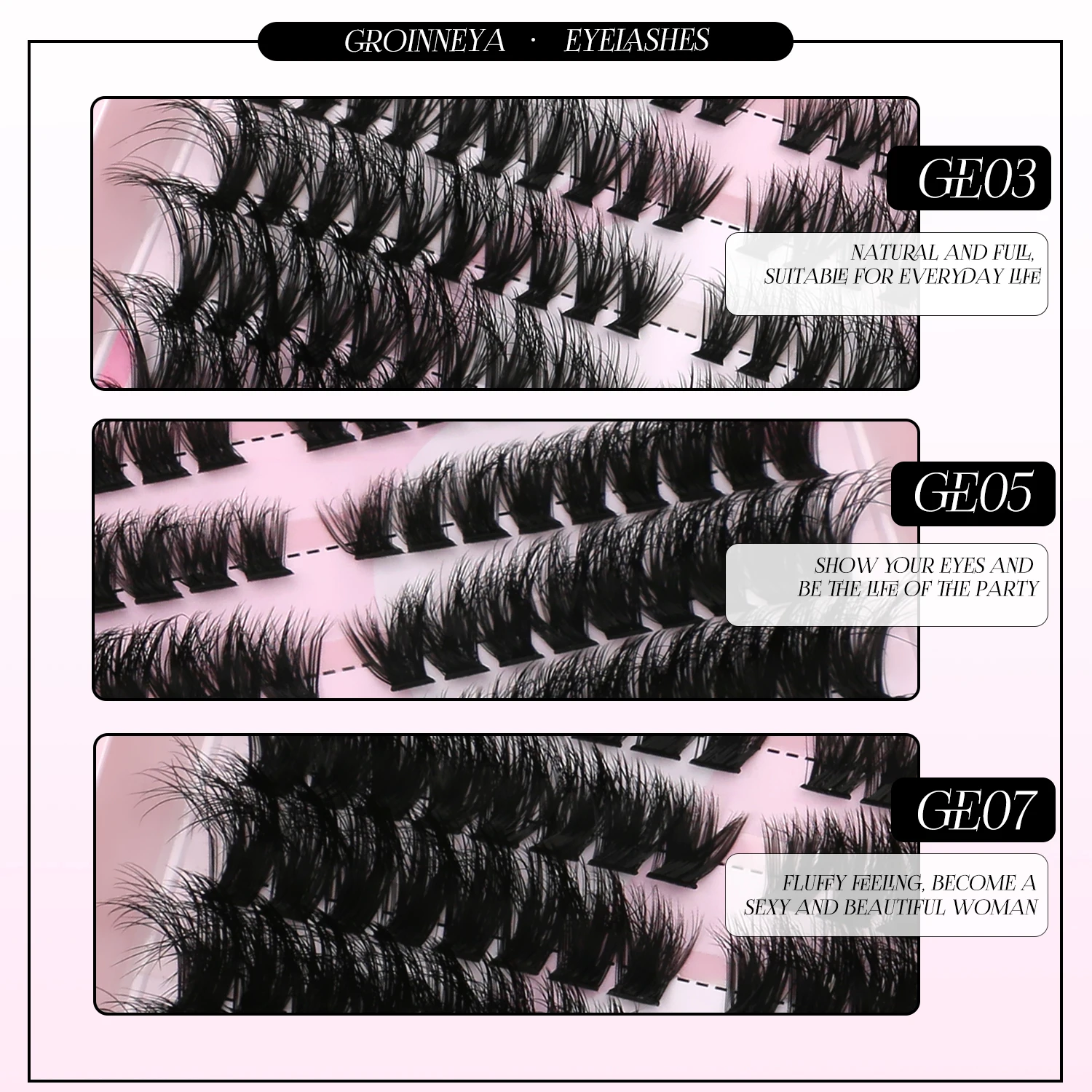 GROINNEYA 3D Mink Lashes Kit Cluster Eyelashes DIY lashes Soft Thick Lash Clusters Luxury High Quality False Eyelashes Make up