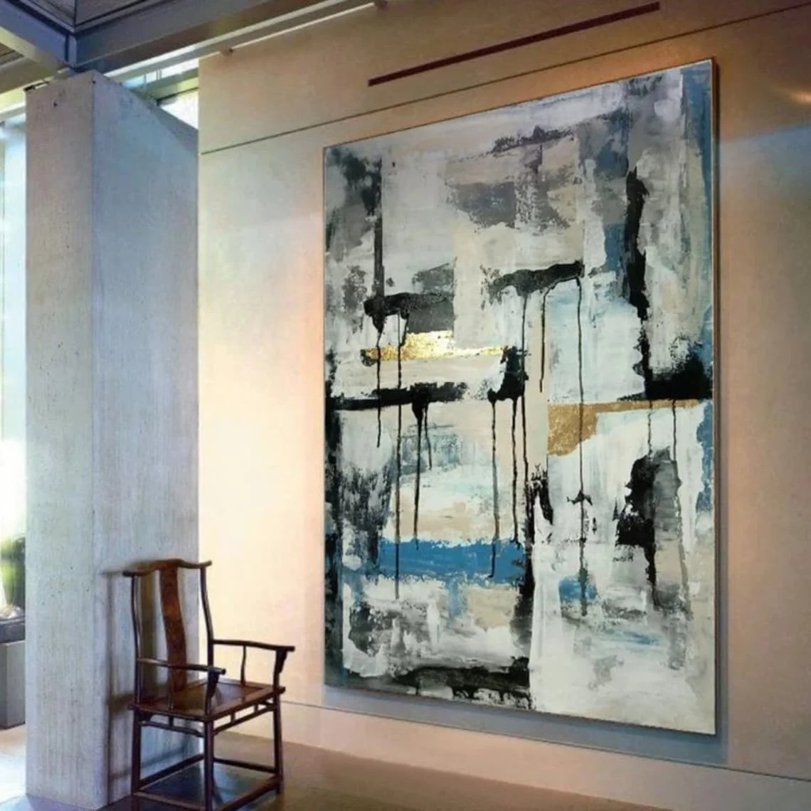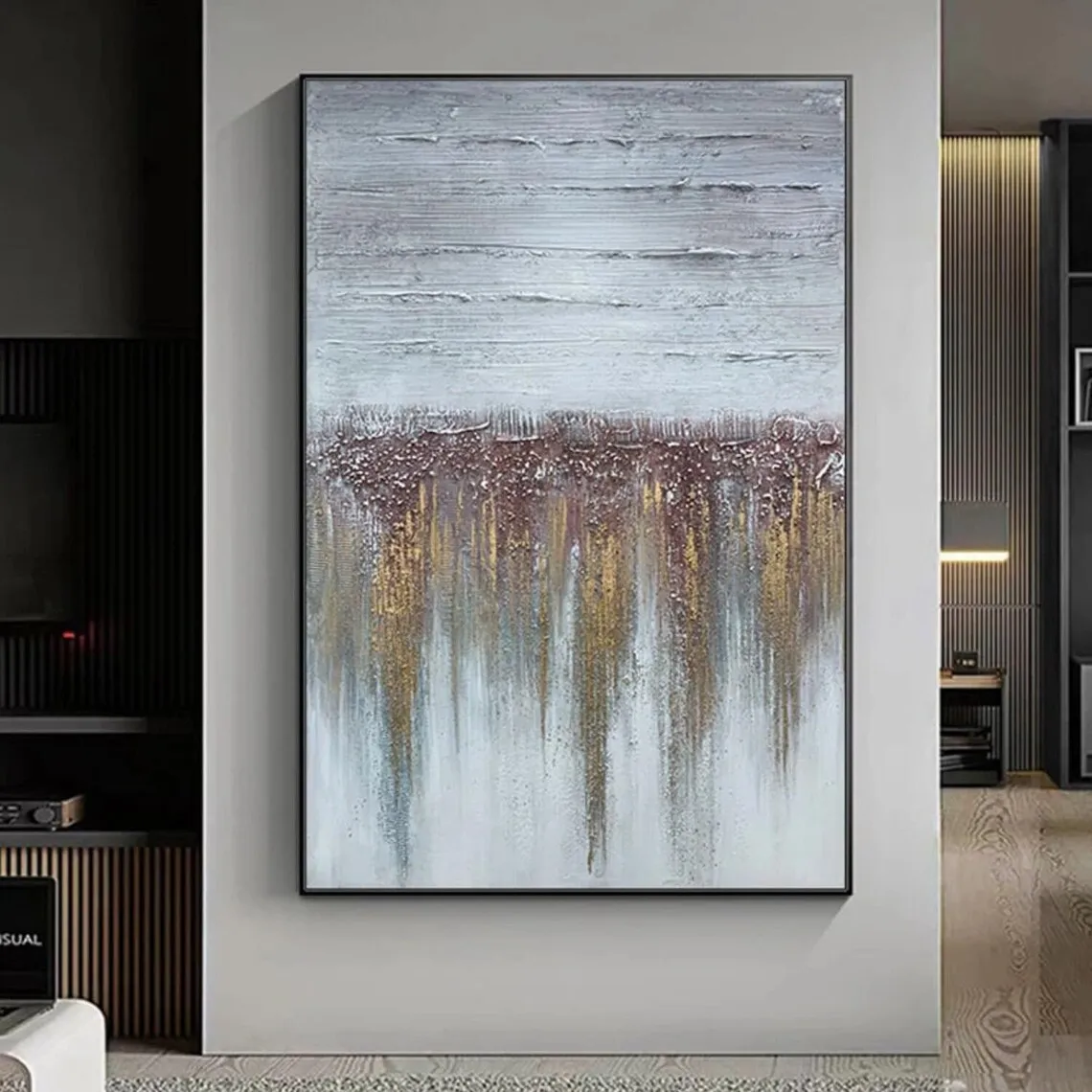 Be the first to review “Hand Painted Large Textured Oil Painting Modern Acrylic Grey Gold Texture Drip Style Abstract Wall Art Picture Living Room Decor”