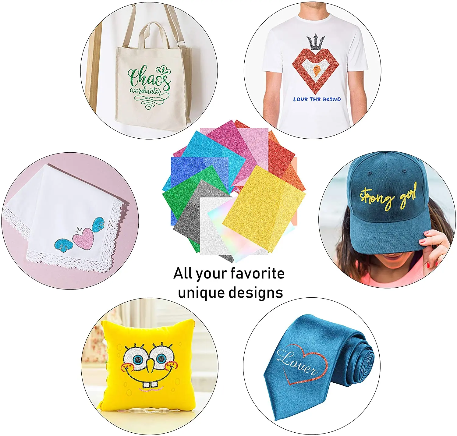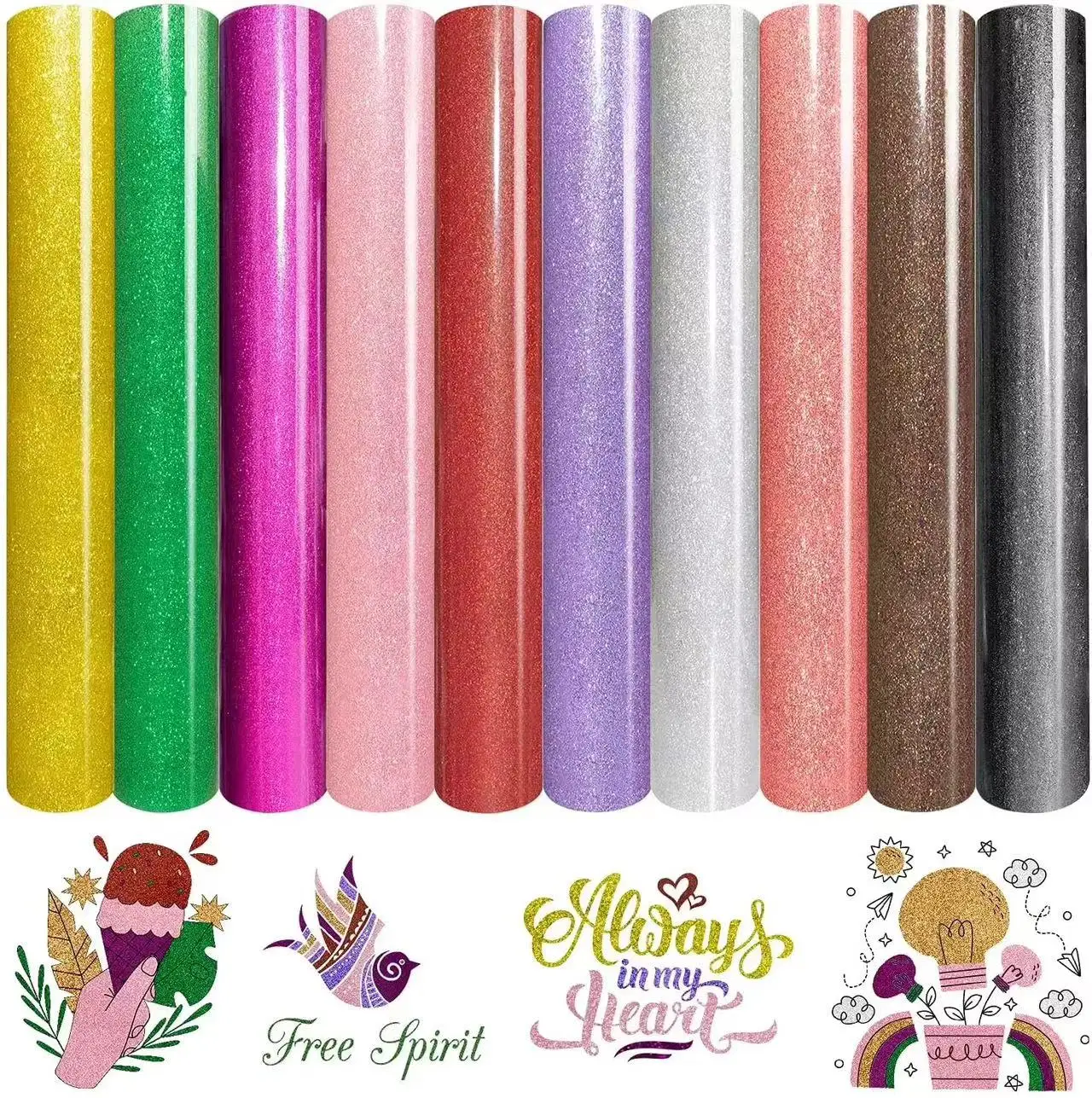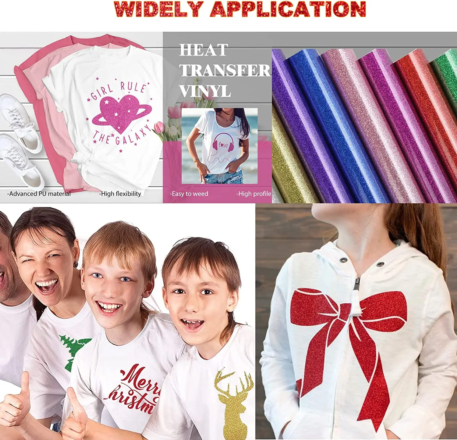 Heat transfer glitter vinyl 12×10 inch 1 sheet transfer vinyl iron on for clothes HTV shirt high elastic decor film easy to cut