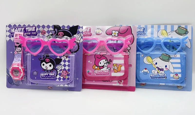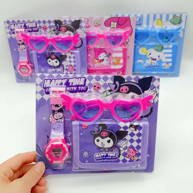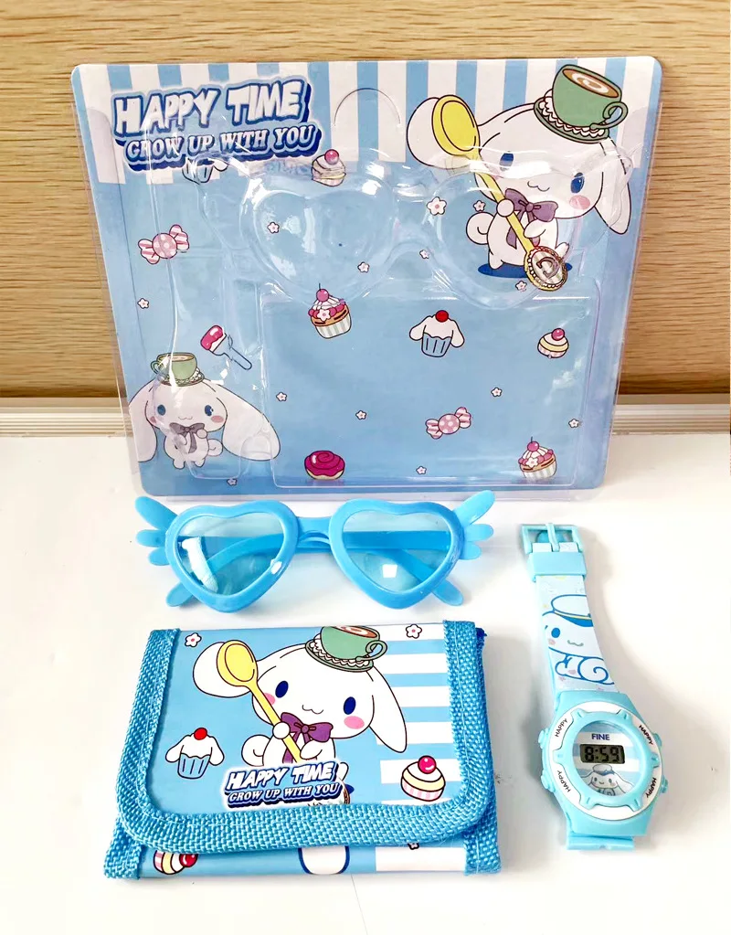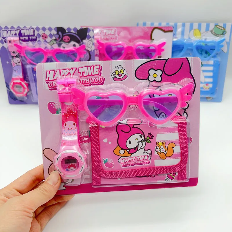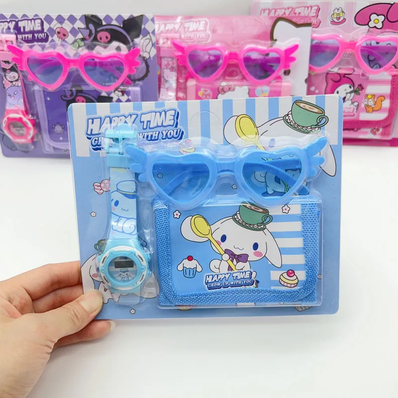 Hello Kitty Children WatchWalletGlasses Set Cartoon Digital Watch Kids Boys Girls Kindergarten Elementary School Student Gift