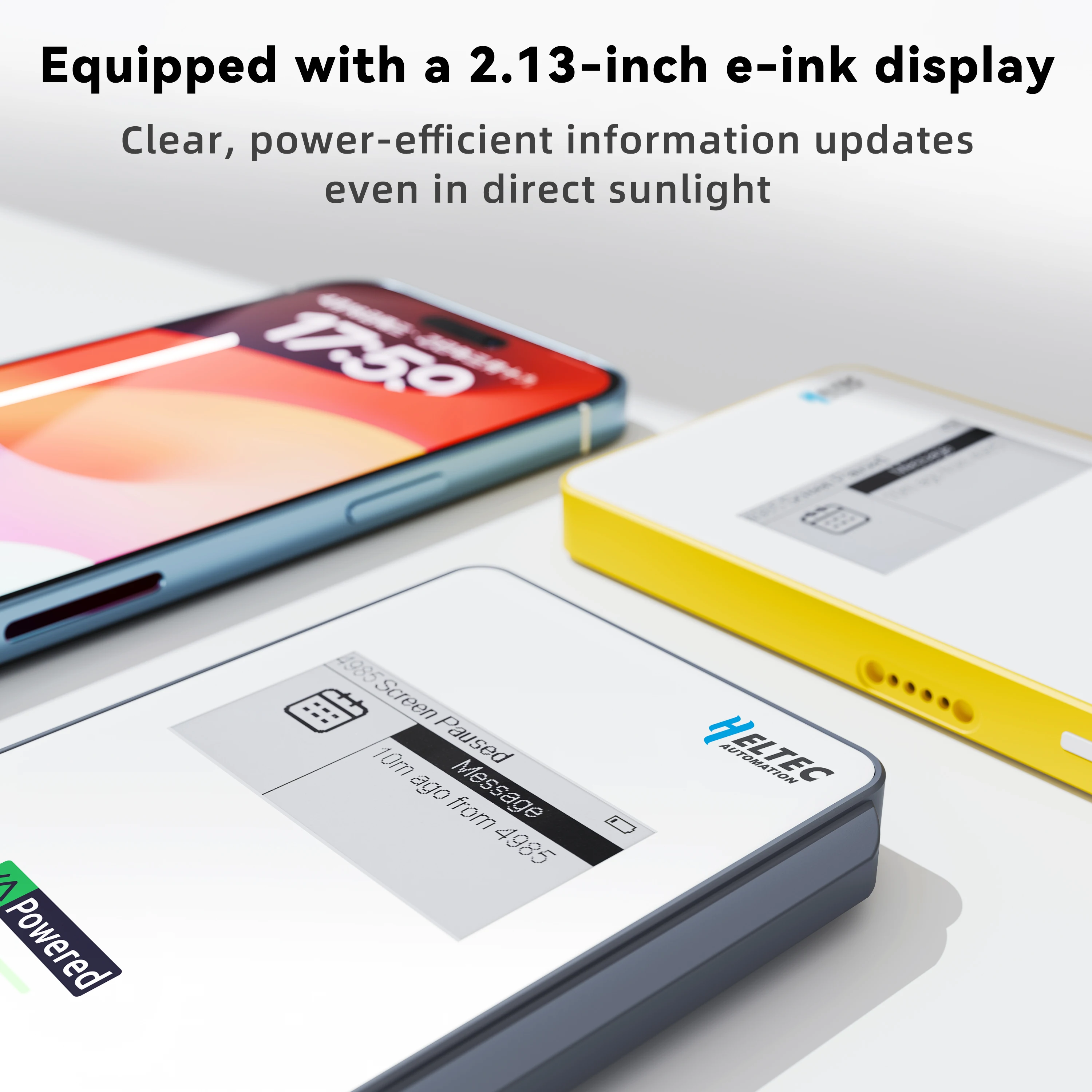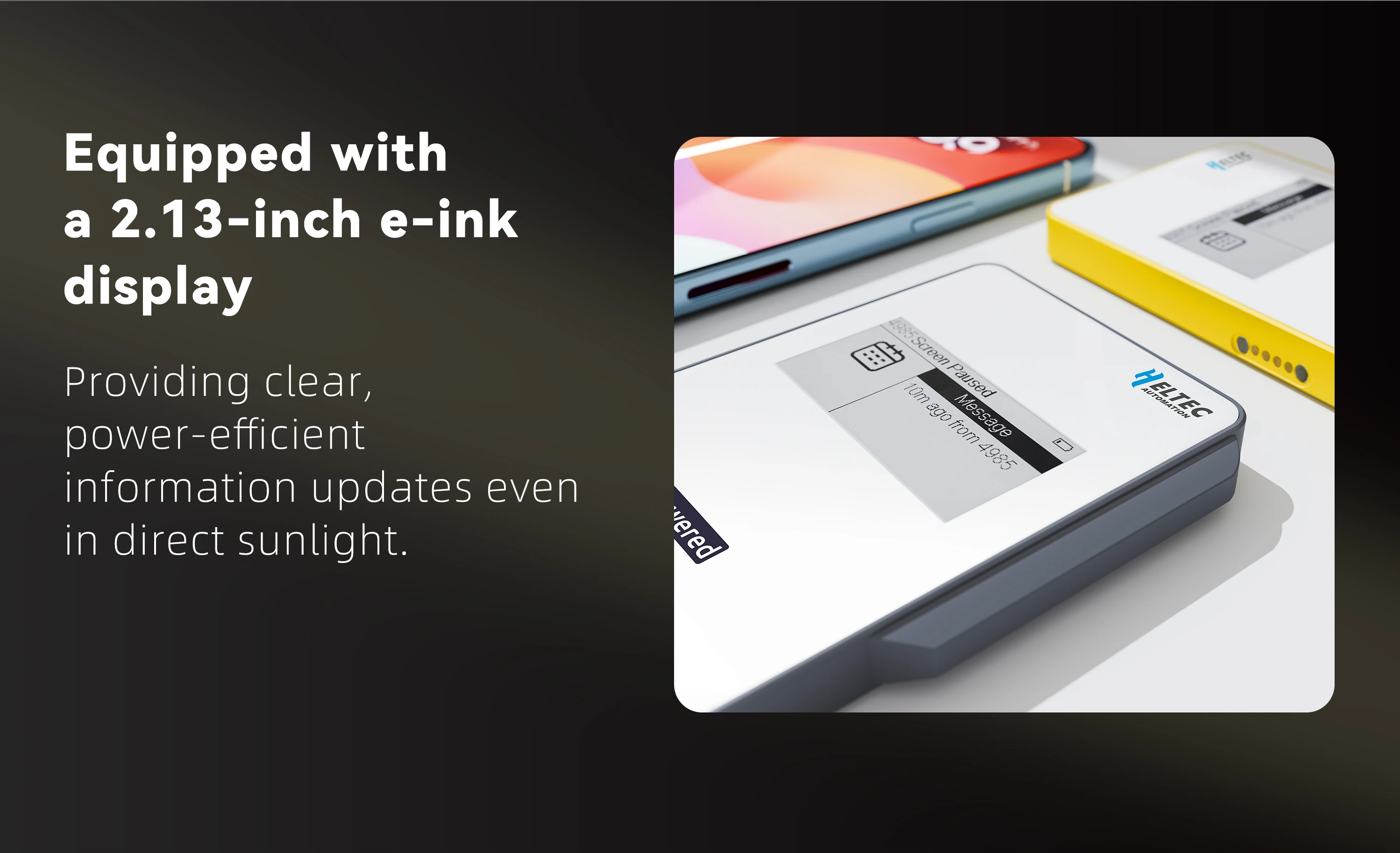 Equipped with a 2.13-inch e-ink display, providing clear, power-efficient information updates even in direct sunlight.