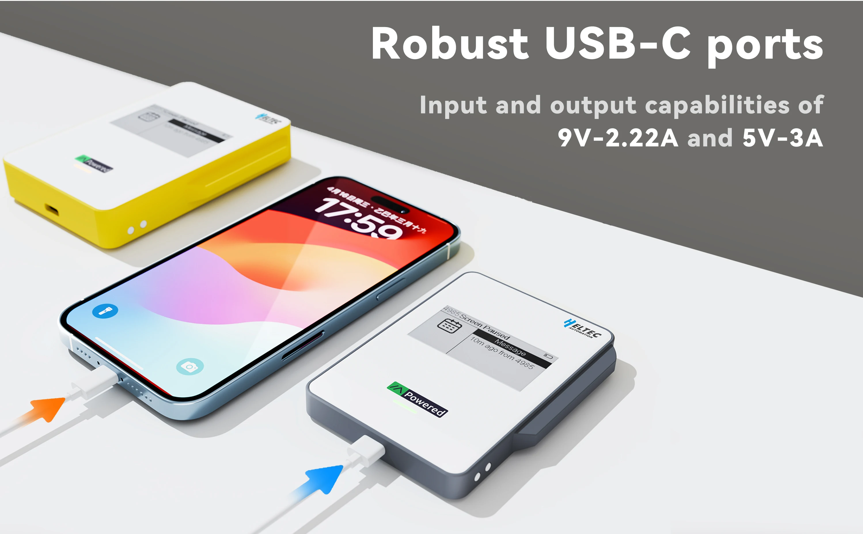 Supports 9V-2.22A and 5V-3A USB-C input and output protocols.