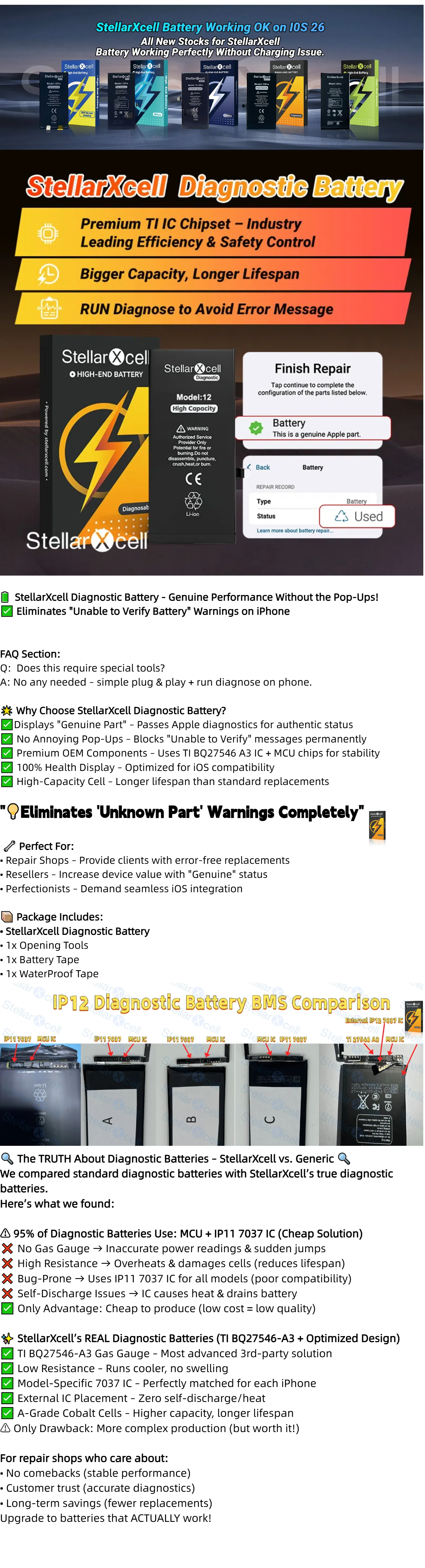 High Capacity Diagnostic Battery OEM TI BMS No pop up message run diagnose for iphone 12 13 14 15Pro max mini Plus