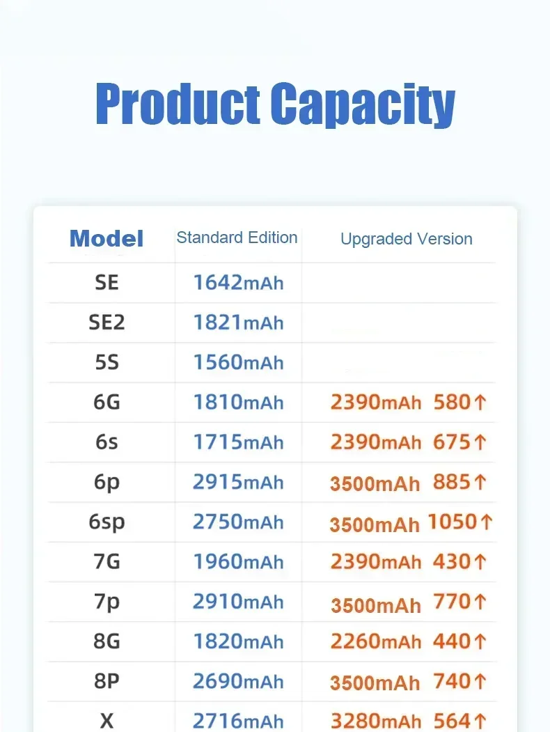 Be the first to review “High Capacity Phone Battery For iPhone SE 2 4 5S 6 6s 6p 6sp 7 7p 8 Plus X Xr Xs Max 10 11 12 13 Pro Max Battery For Apple”