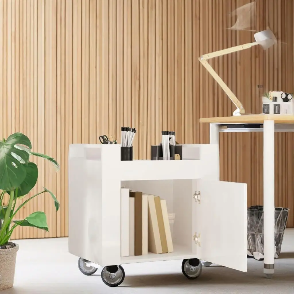 This desk trolley lets you bid chaos on your desk goodbye and saves you from stacks of papers and untidy messes! Durable material: The engineered wood is of exceptional quality with smooth surface and also features strength, stability, and resistance to moisture. Made of engineered wood, the trolley is easy to clean.Utility casters: Featuring 4 casters, the office desk trolley can easily move around your workplace.Sturdy top: The sturdy top of the under desk trolley is ideal for placing your office supplies.Practical door: Keep your essentials free from dust by hiding small essentials behind the door of this under desk storage trolley. Note:Each product comes with an assembly manual in the box for easy assembly.