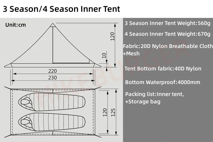Hikeburger Yuanxing 2P Outdoor Camping Ultralight Tent Tarp Type A Pyramid Double Silicon 20D Nylon Cloth Waterproof Canopy Tent