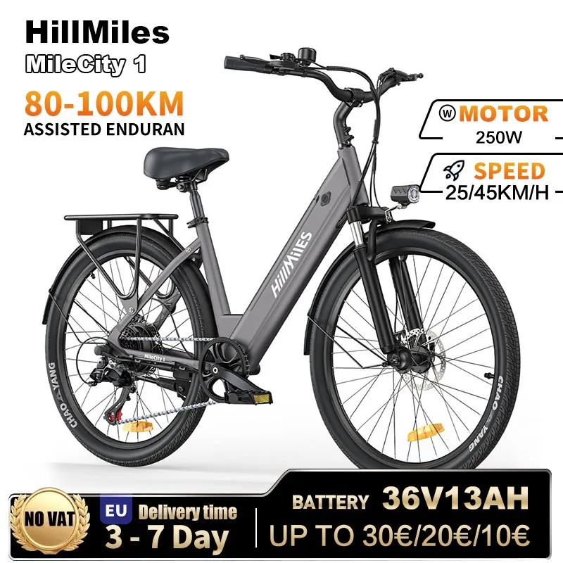 HillMiles MileCity 1 Electric cycle E-Cycle 36V 13Ah 250W 26 Inch women’s Urban switching Model High-Carbon Steel Ebike cycle