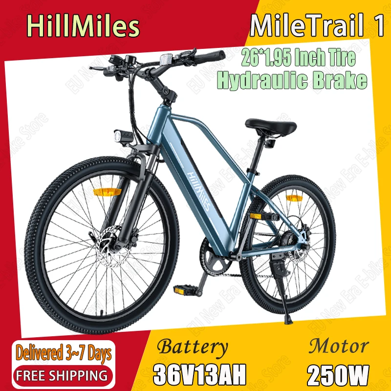 HILLMILES MileTrail 1 Electric Bike 36V13AH Lithium Battery 250W Motor Hydraulic Brake Electric Bike 26*1.95 Inch Tire E-bike