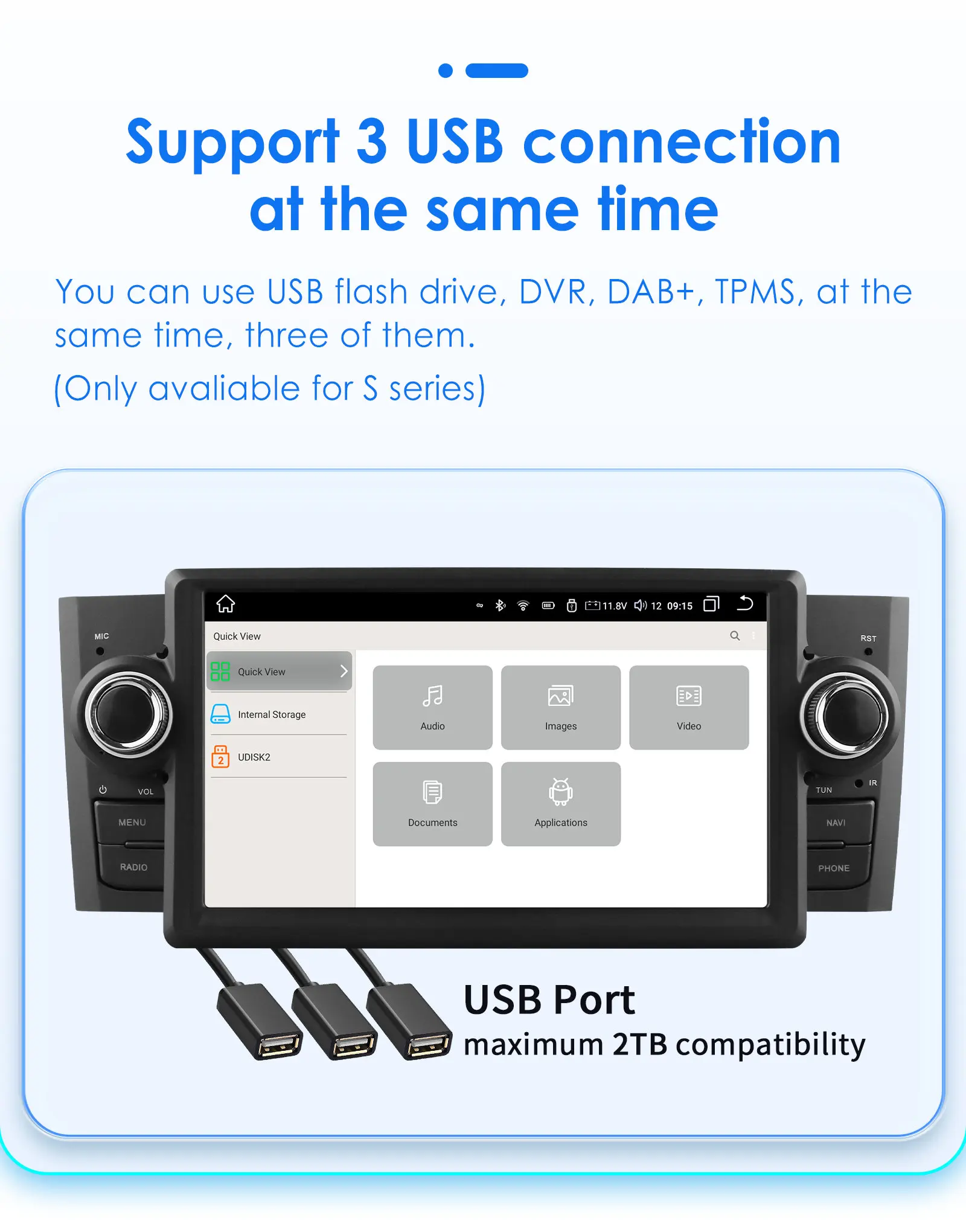 You can use USB flash drive,DVR,DAB+,TPMS at the same time,three of them.