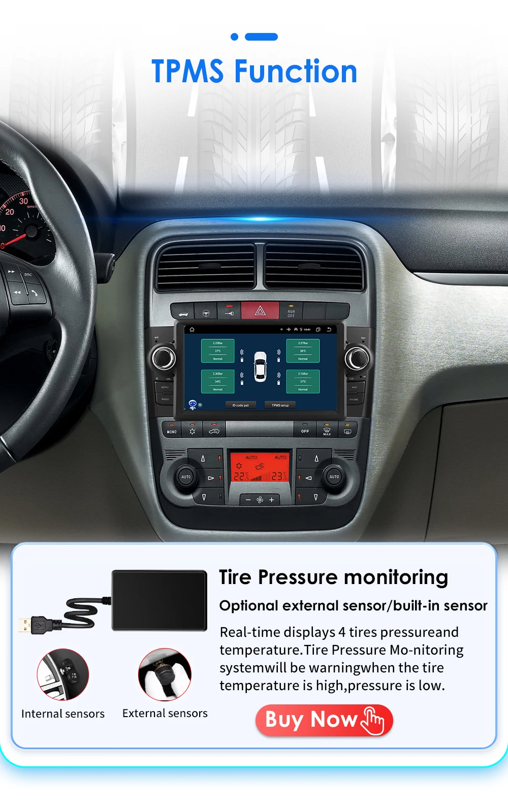 Support USB TPMS, real-time feedback of your tire status, more and more national automobile manufacturing standards require vehicles to be equipped with tire pressure alarm devices. The importance of tire pressure warning devices is evident. . You can click the image below to buy it.
