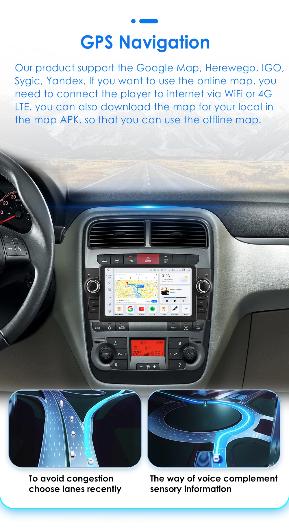 4, 4G Network + Steering Wheel Control + RDS +Built-in Navigation Offline Maps + High-quality DSP chip makes the sound quality playback even better;
