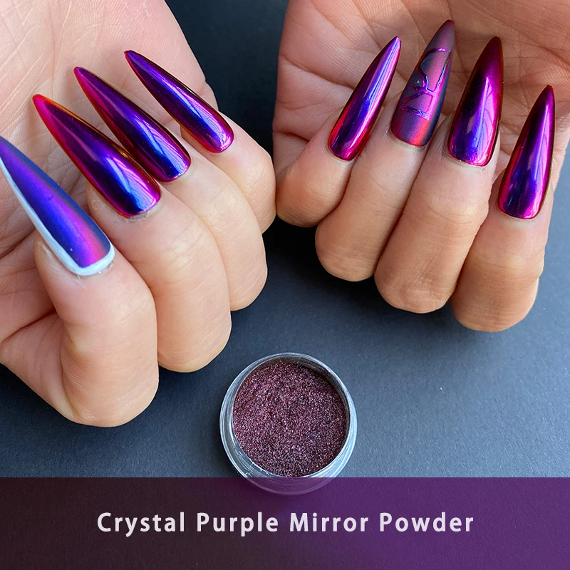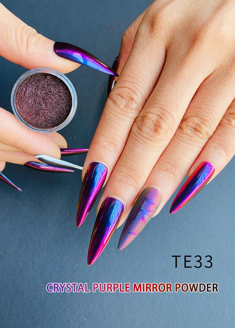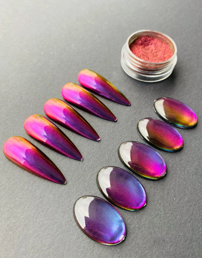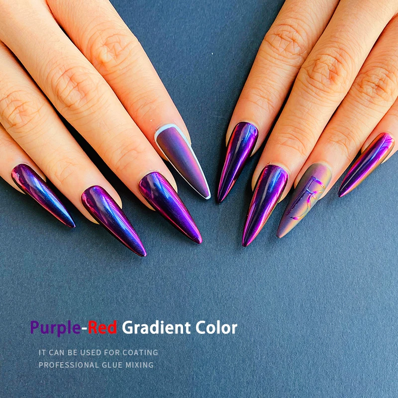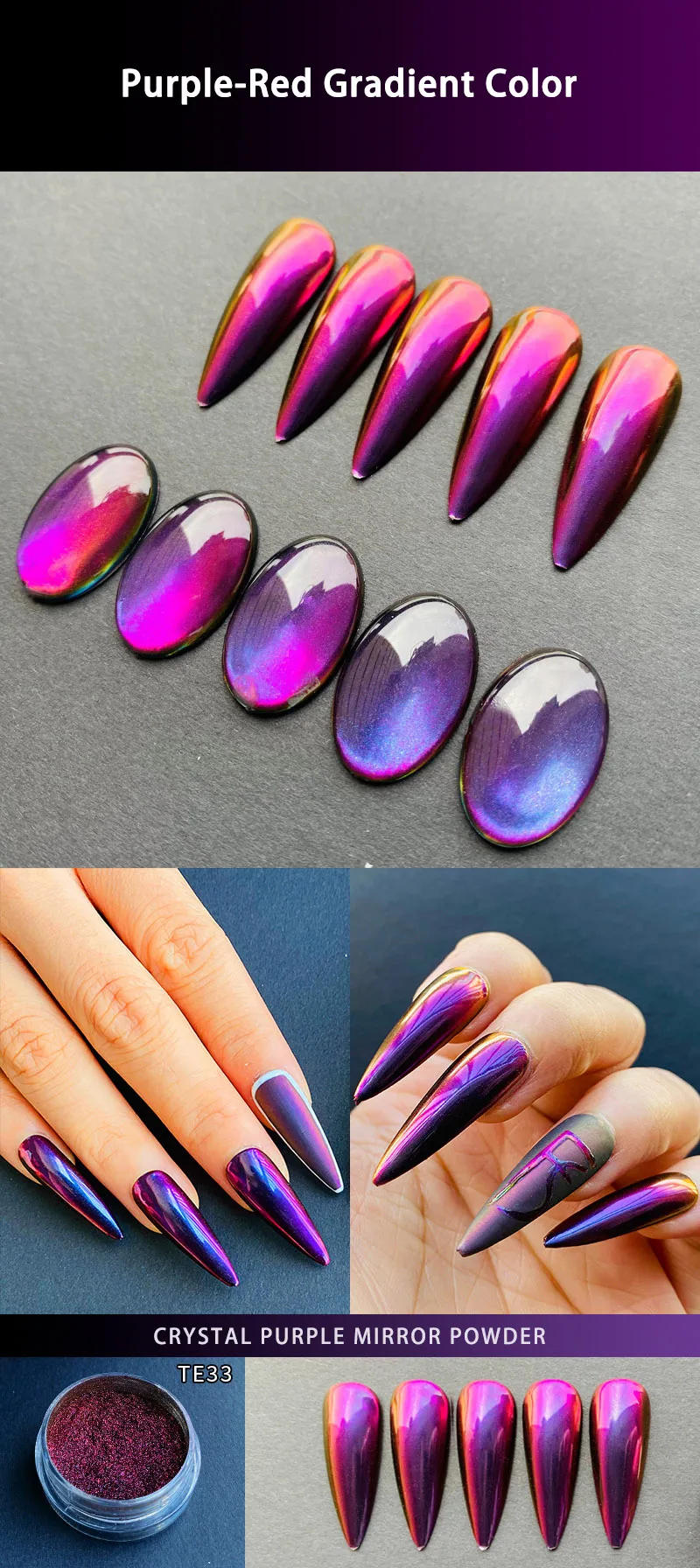 HNDO Purple-Red Gradient Colors Nail Magic Mirror Powder Glitter Effect for Professional Manicure Chrome Powders Dust TE33