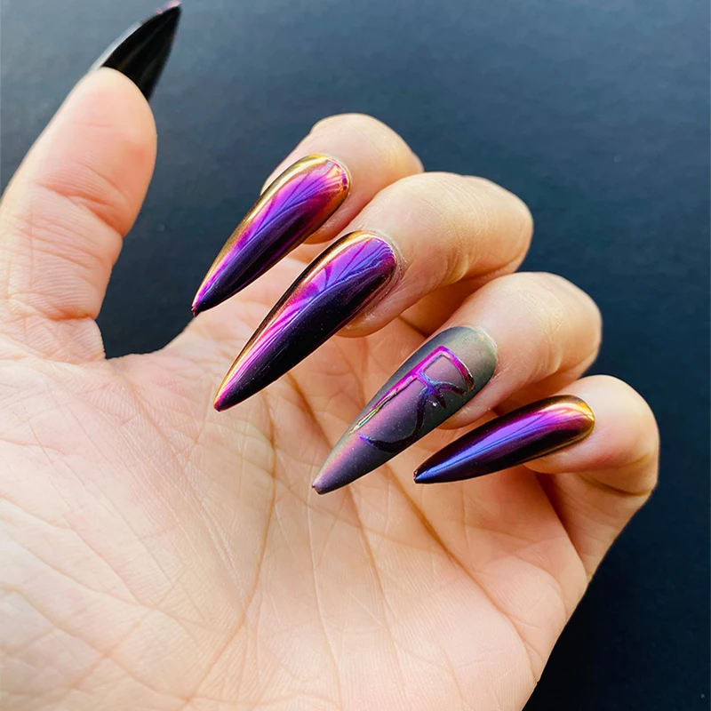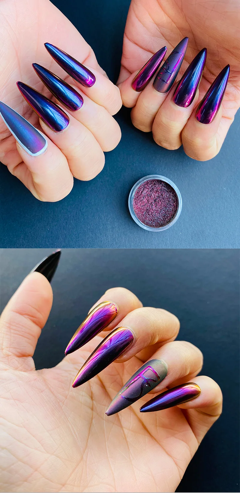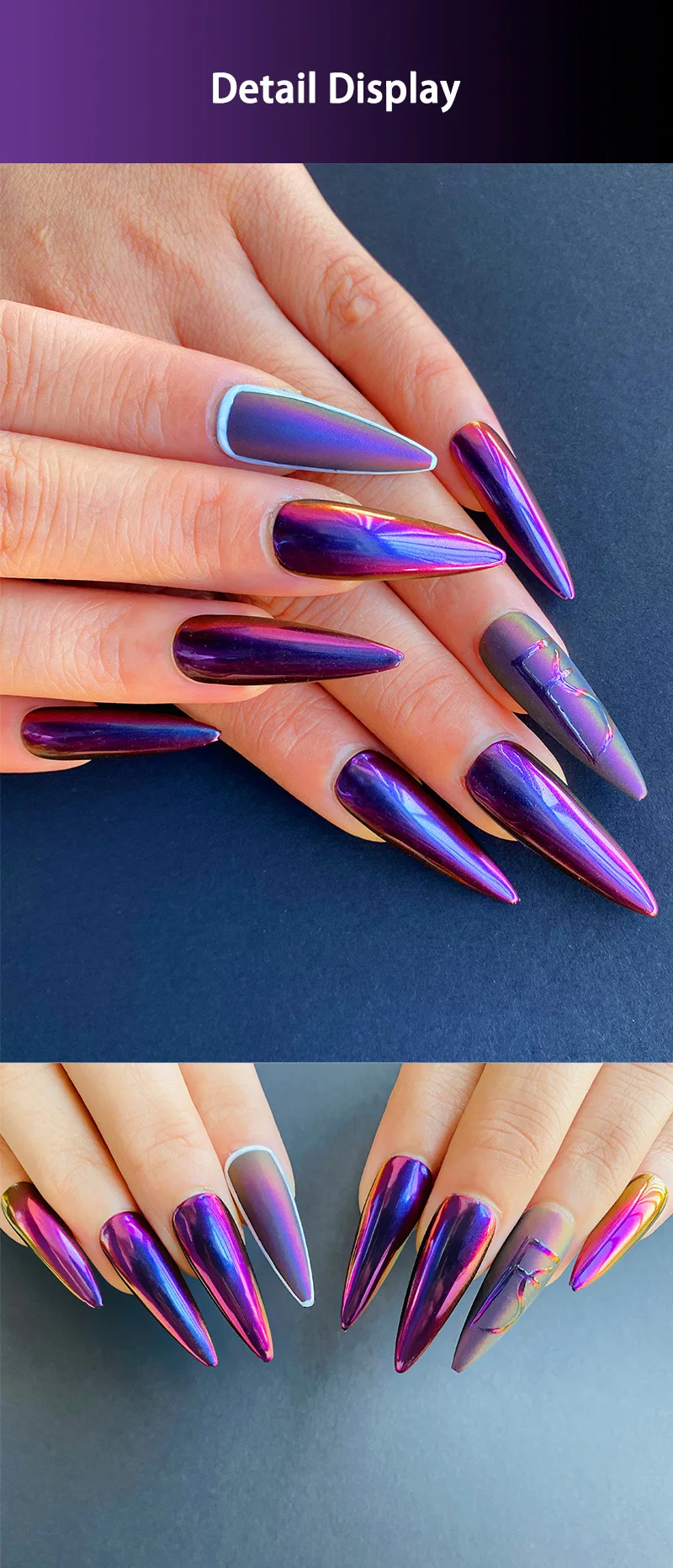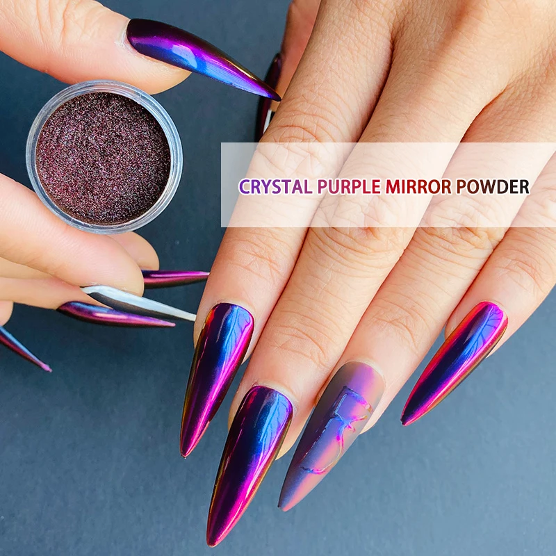 HNDO Purple-Red Gradient Colors Nail Magic Mirror Powder Glitter Effect for Professional Manicure Chrome Powders Dust TE33