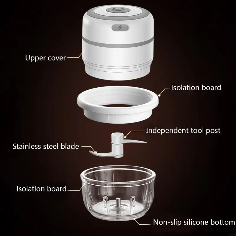 Portable wireless chopper is powered by a USB rechargeable, compact and easy to carry, saving space when traveling or camping.