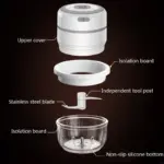 Portable wireless chopper is powered by a USB rechargeable, compact and easy to carry, saving space when traveling or camping.