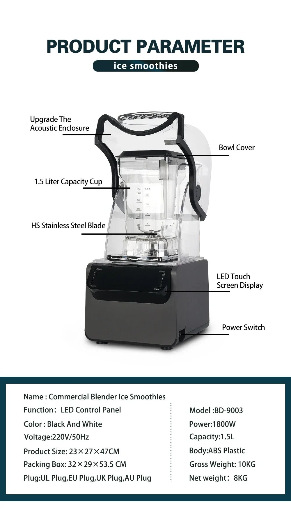 HomeWise Heavy Duty Commercial Blender Ice Smoothies Blender Machine Food Mixer Juicer Food Processor With Reprograming Function