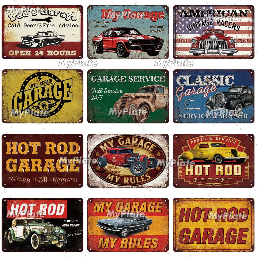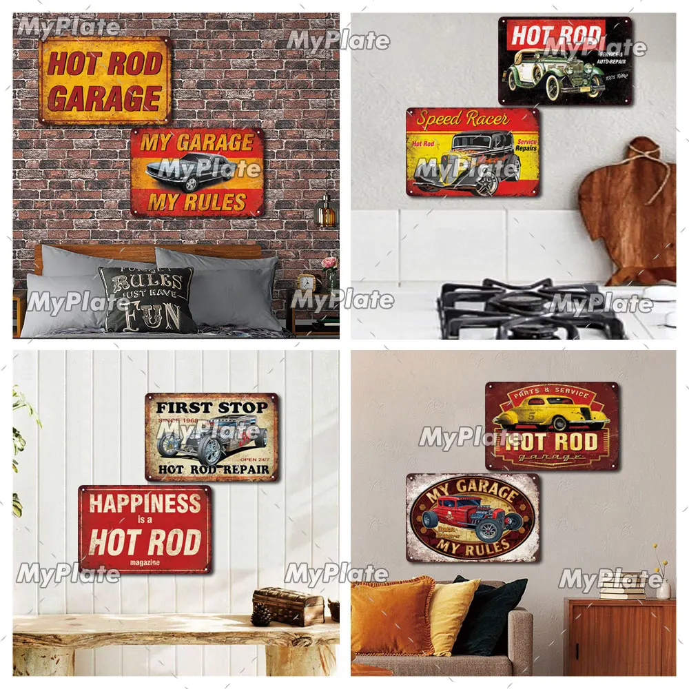 Hot Rod Garage Metal Sign Vintage Plaque Car Tin Sign Plate Wall Decor For Bar Club Man Cave Cartoon Art Painting Classic Poster