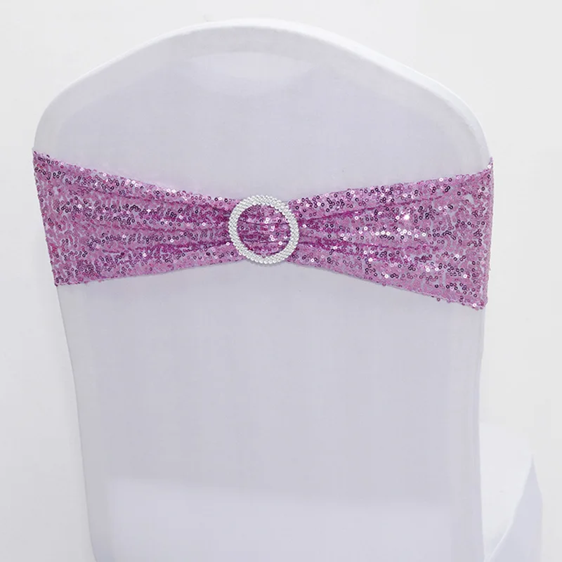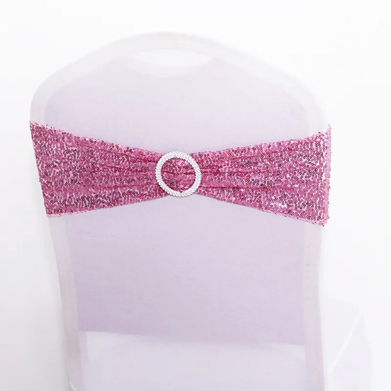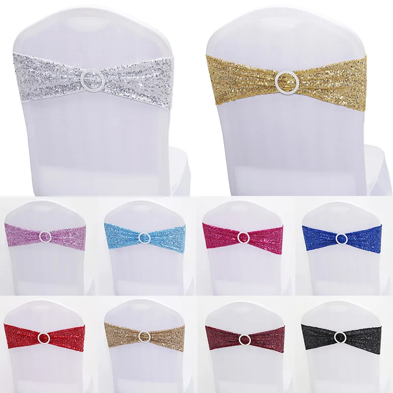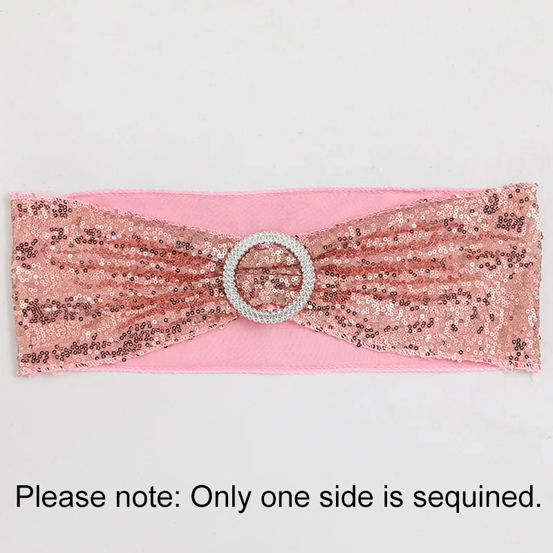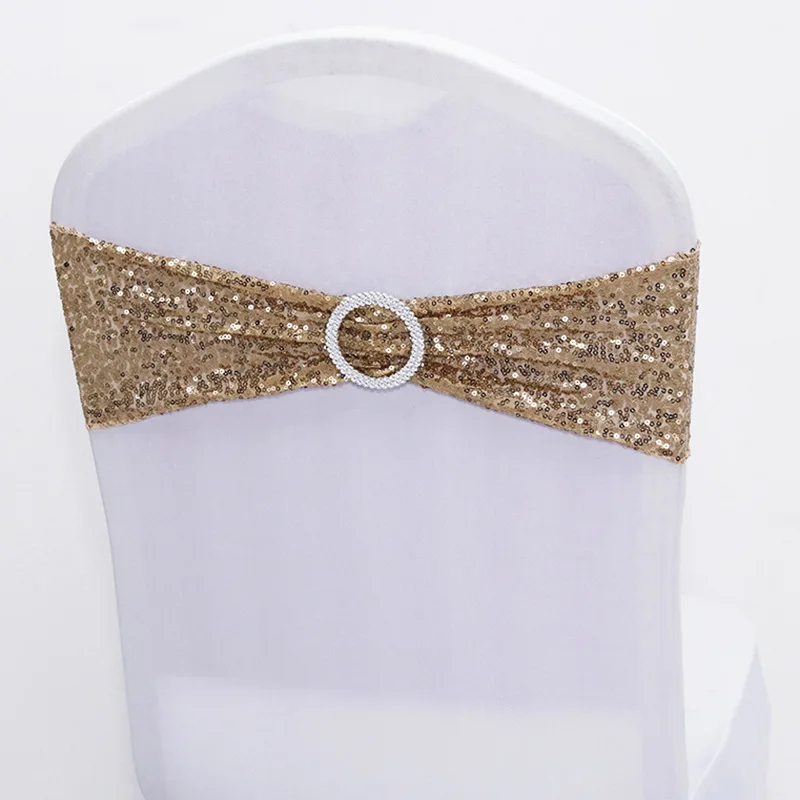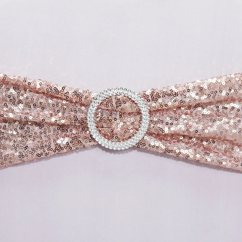 Hot Sale Shiny Sequin Rose Gold Spandex Bands Shiny Ribbon With Round Buckle Wedding Party Hotel Decoration Chair Sashes