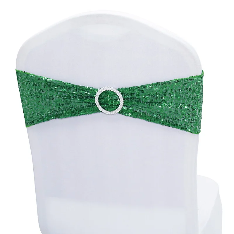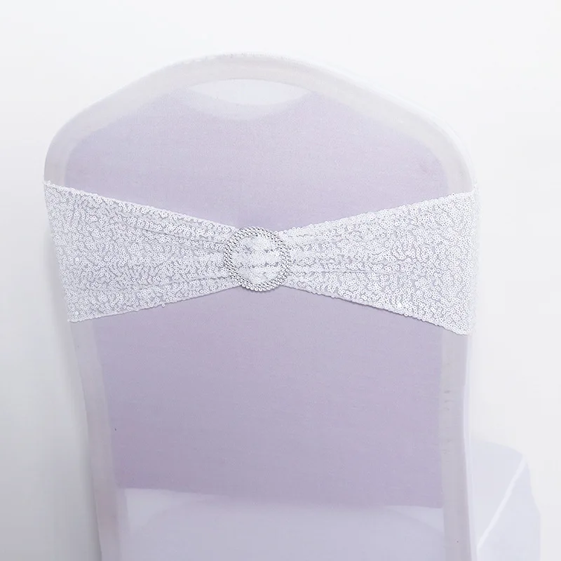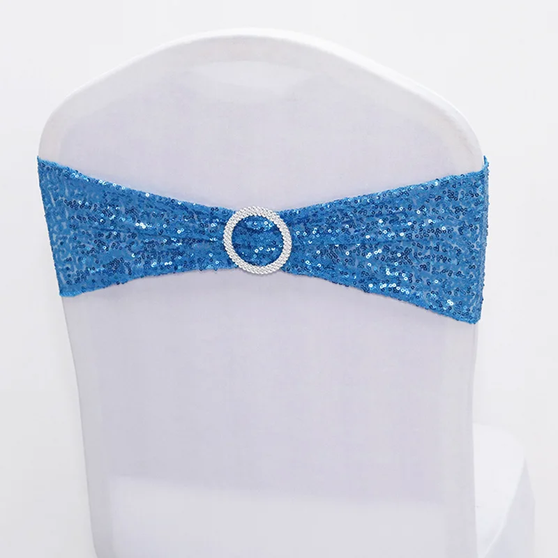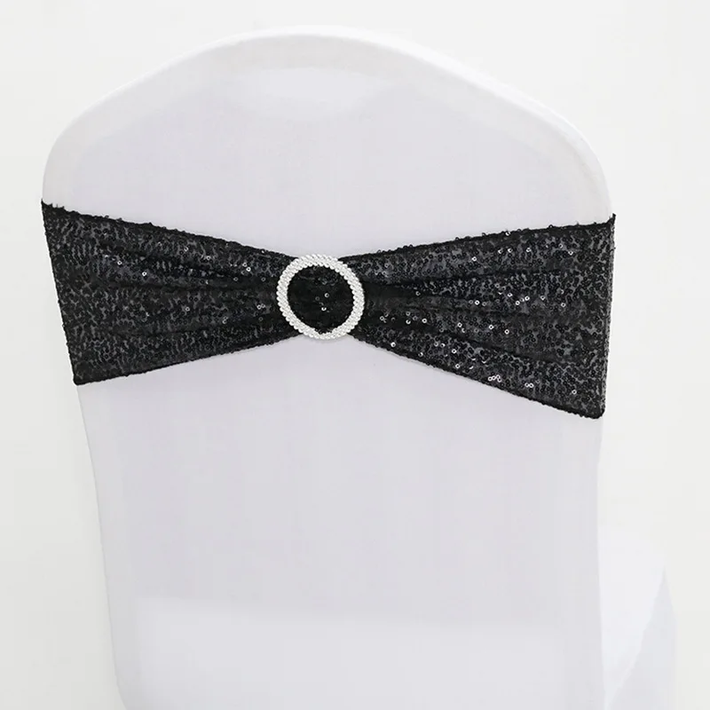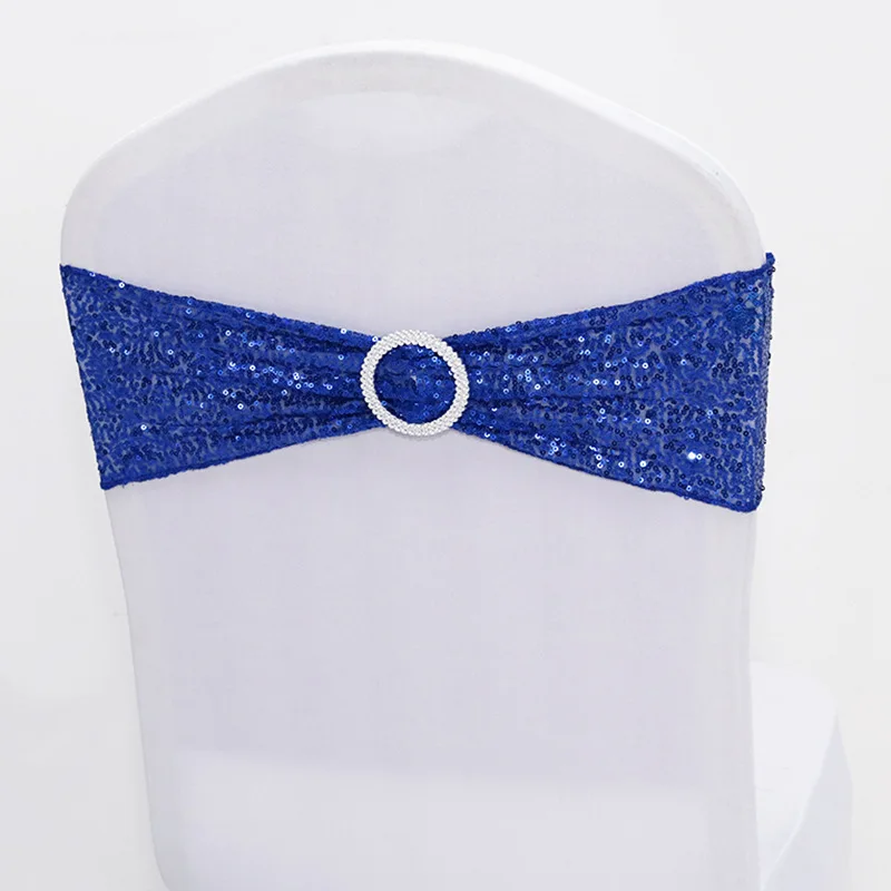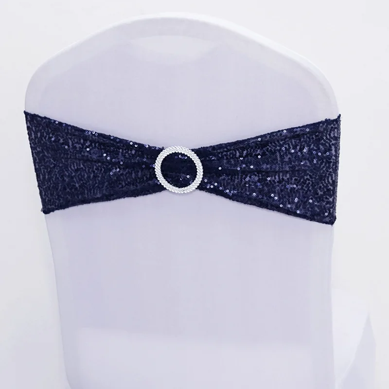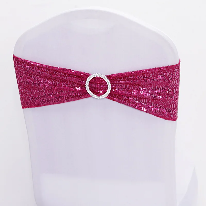Hot Sale Shiny Sequin Rose Gold Spandex Bands Shiny Ribbon With Round Buckle Wedding Party Hotel Decoration Chair Sashes